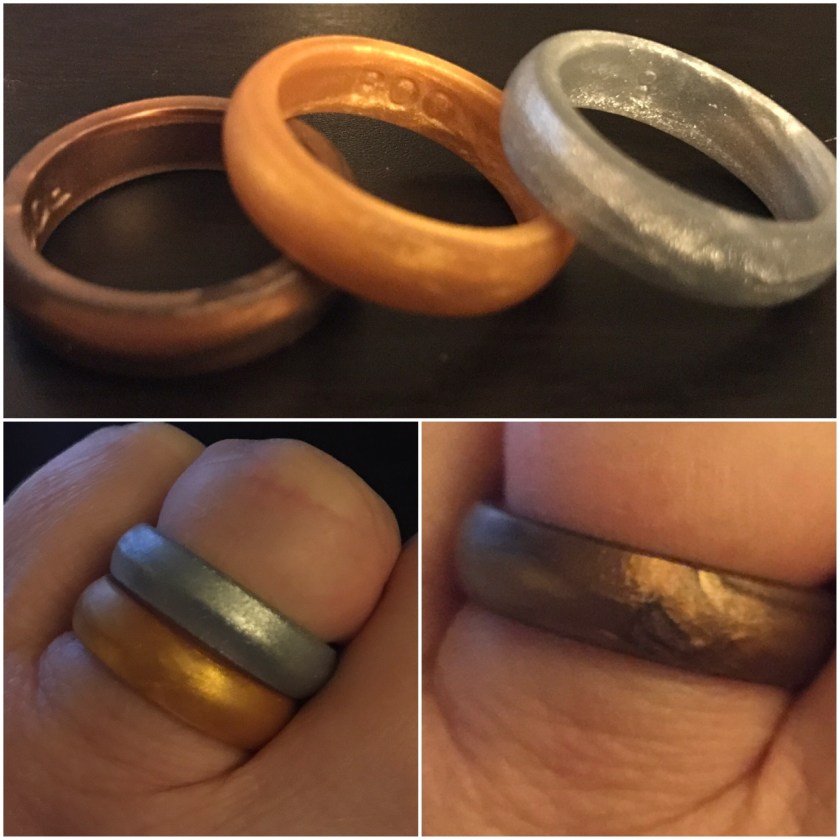 Every Friday I will review a product, and in some cases two similar products, that relate to pregnancy or parenthood. This first review will be on a category of product I have a lot of experience with, silicone wedding bands. As is the case with many women, pregnancy has swelled up my fingers, and wanting to continue to wear bands without having to worry about it being cut off, I tried many different bands.