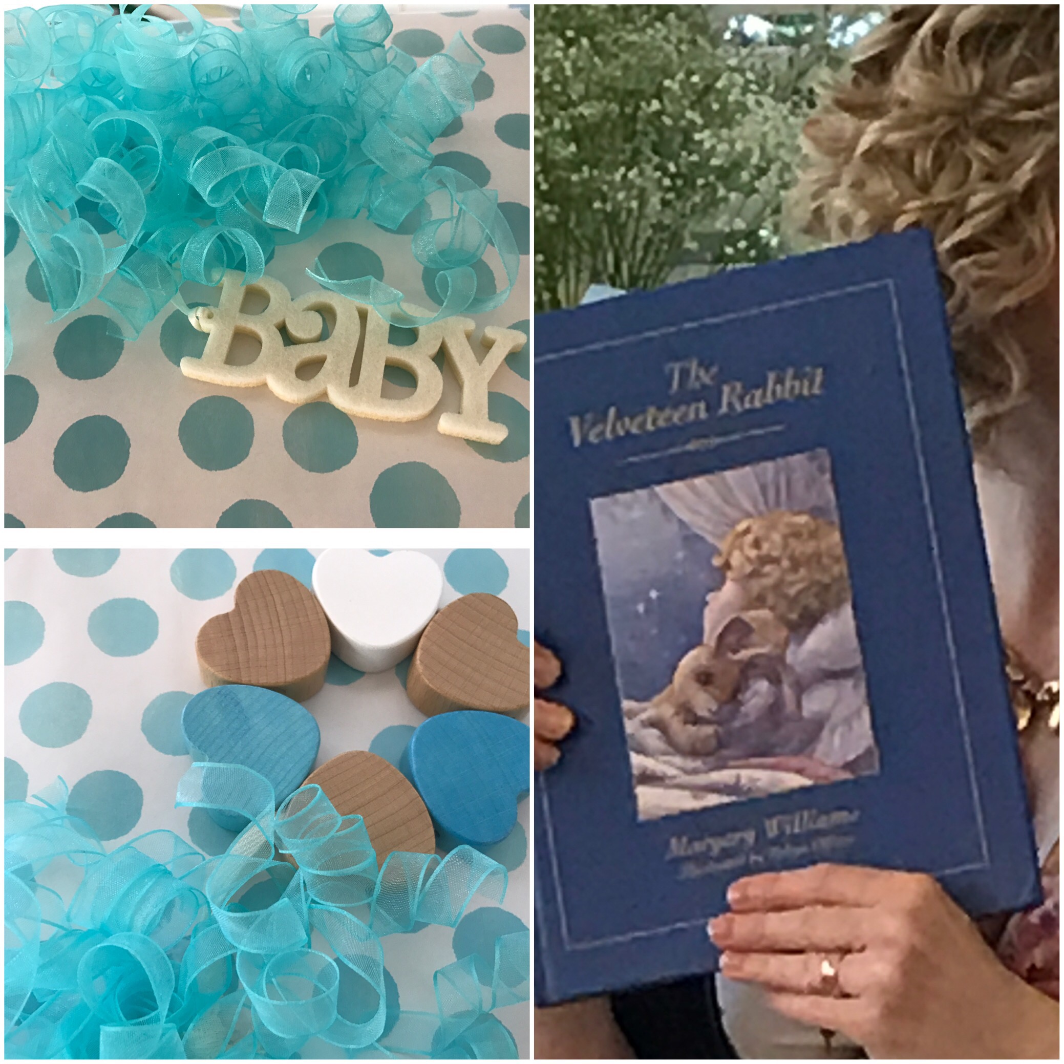 The invitation said to bring a book in place of a card, so the one from Matt and I was a copy of The Velveteen Rabbit, one of my childhood favorites, with a boy on it with hair very similar to the mother to be’s hair.