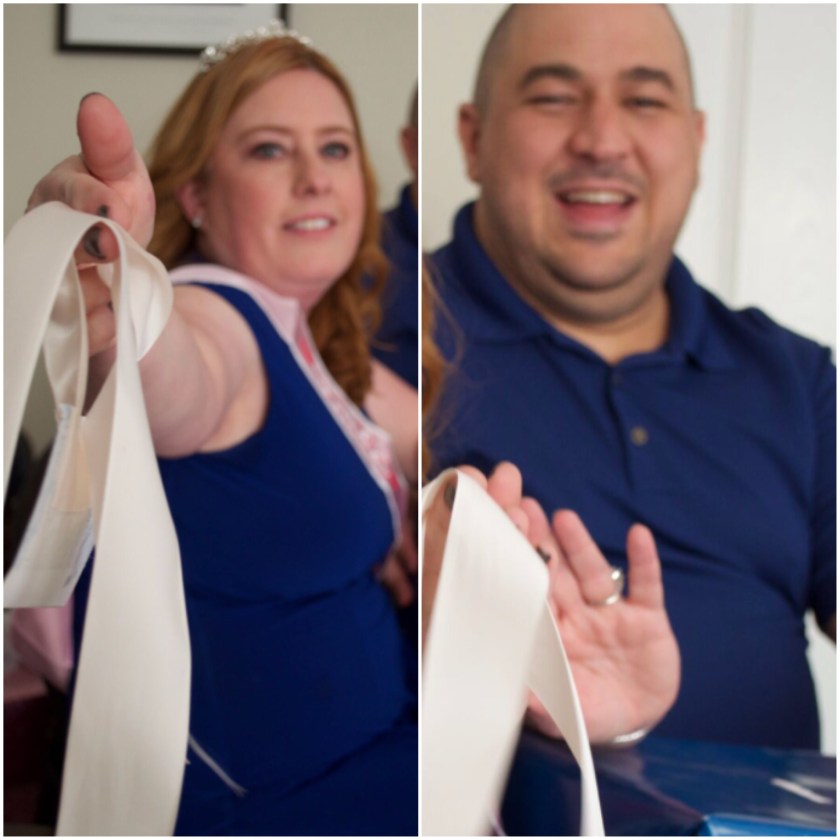 The honoree mentioned not having to be careful breaking ribbons at her party, referencing the bridal party game where every broken ribbon represents a baby you will have. She mentioned breaking three at that party and commented it was accurate representing her two angel babies and this one on the way. I broke only one at mine even though I was trying to break more and the ribbon game seems to be holding true for me also, though I did not tell her that.