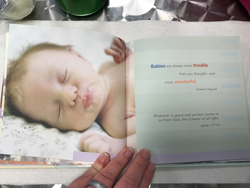 One of the great things about the book is that it can be read straight through or choosing one or more pages at random. It’s perfect for those with little free time, as is true for many partners. It would be a good gift for parents and parents to be, grandparents and grandparents to be and godparents and godparents to be.