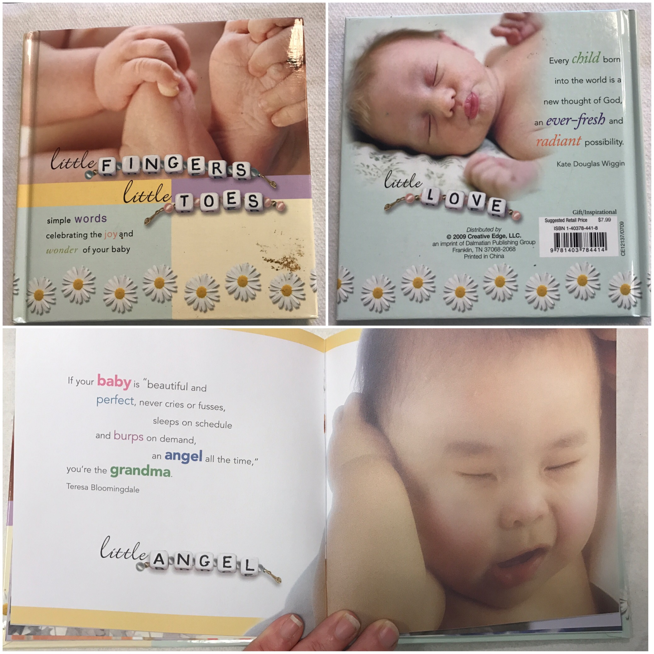 This week I review the first light reading book of my blog: Little Fingers and Little Toes. The book is made up of quotes on every other other page, some pages with writing have one quote and some two. The pages with two quotes feature one religious and non/religious one. Opposite the quotes are adorable photos of babies in their first years of life.