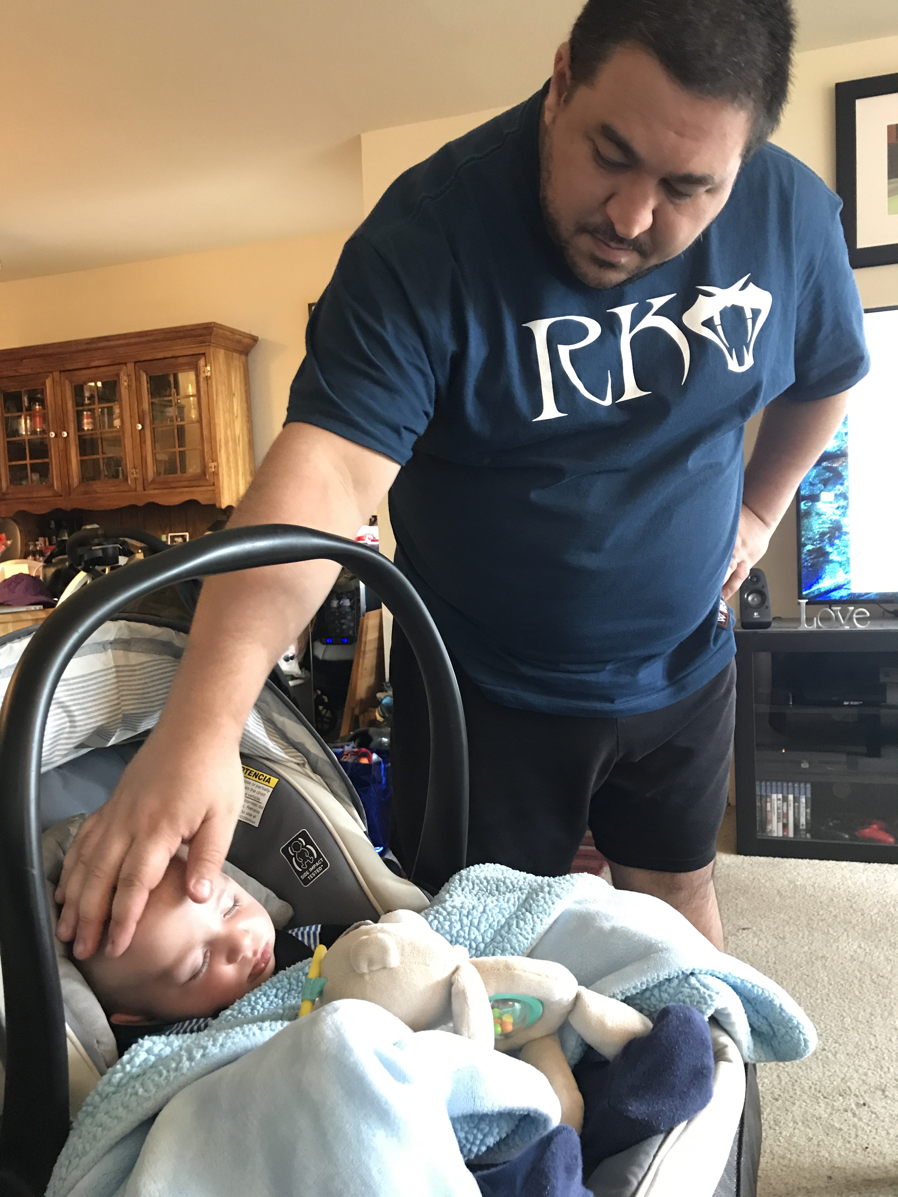 Matt and I had discussed several times how we would like to get some hands on practice with a baby before I give birth. Our friends Joe and Katki wanted to go see “Guardians of the Galaxy II”, and were delighted to have us babysit their four and a half month son, Ishan. When the baby was dropped off to us, he was peacefully dozing.