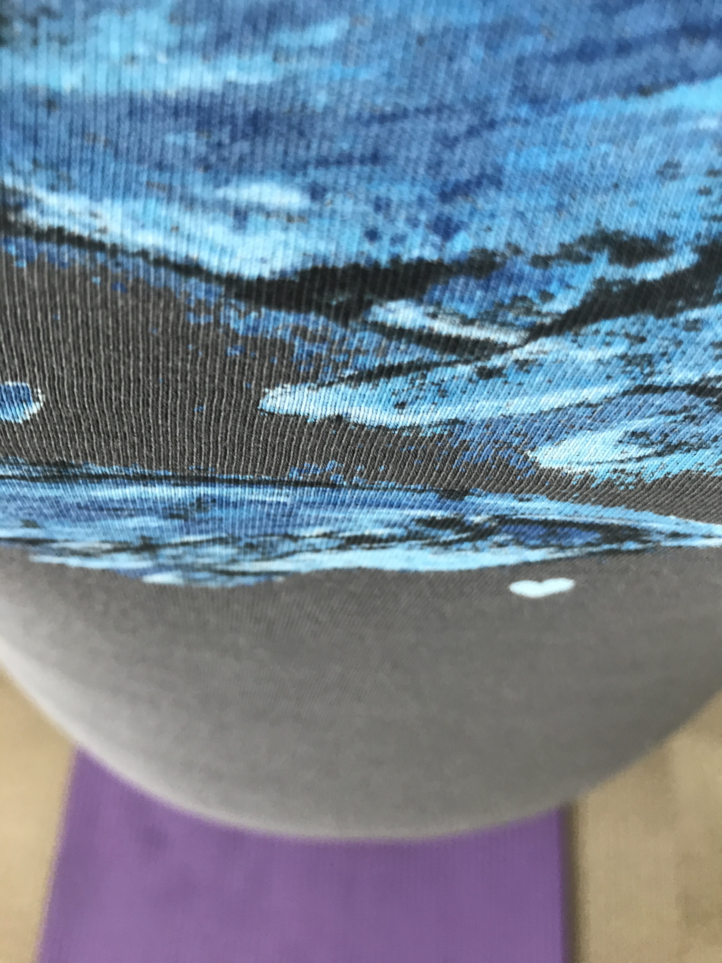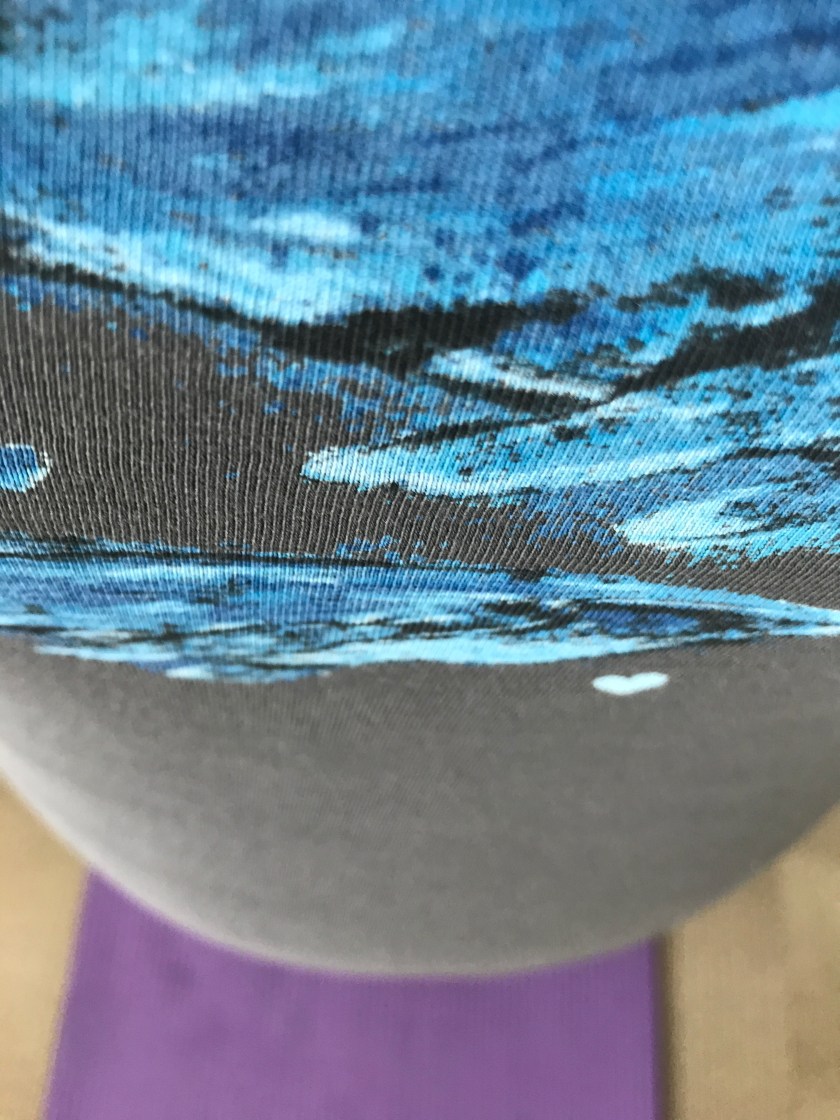 It’s not easy to shoot a pic down at your own pregnancy bump, so this looks extra big in the angle – my bump in the mat pre class.