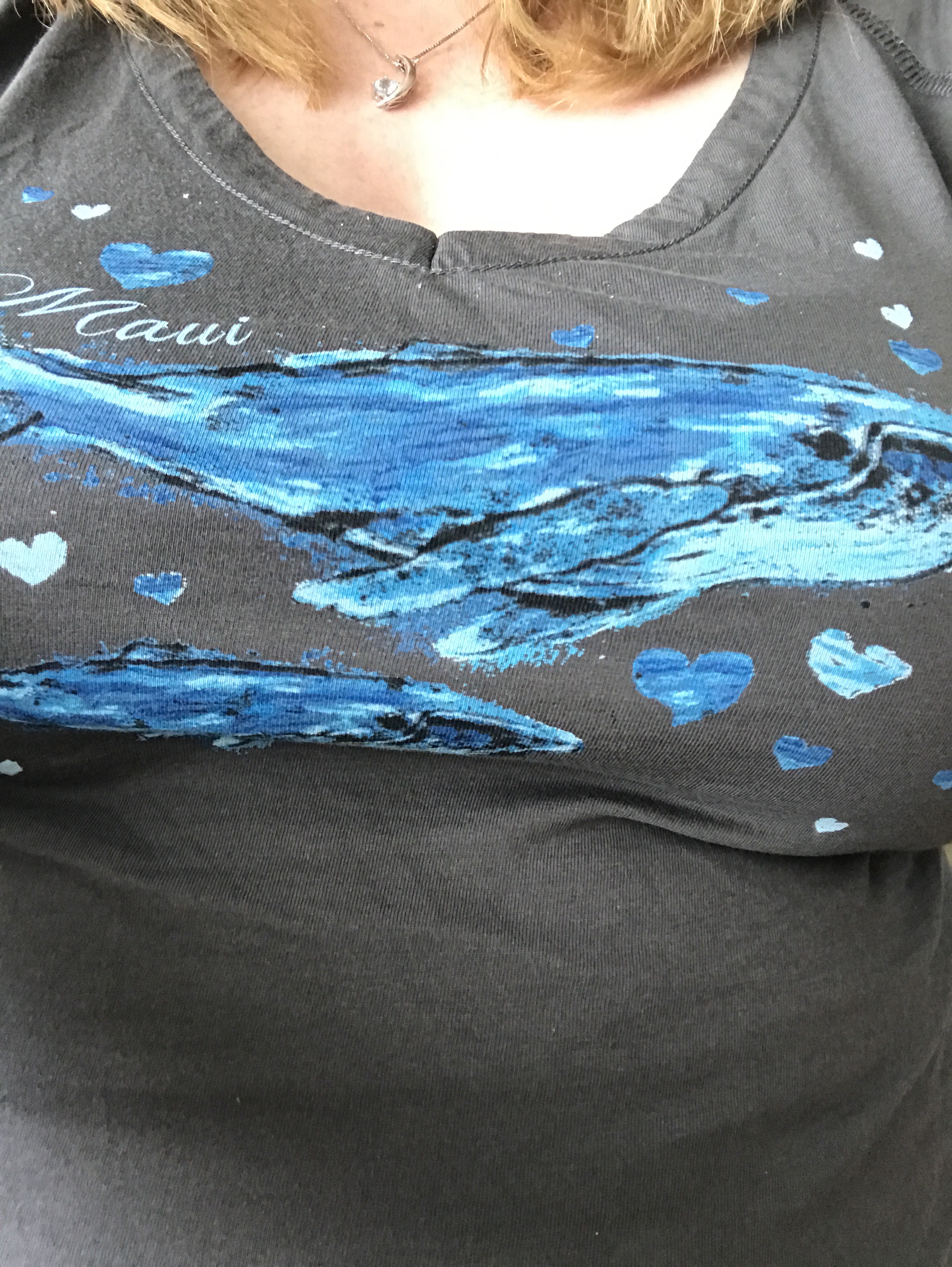 One wearing one of my favorite shirts that I bought on our honeymoon in Maui.