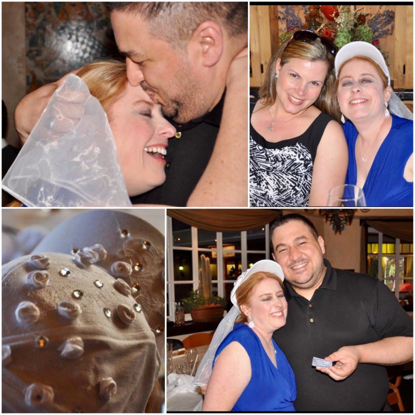 It was a fun night and I wore a bride baseball hat with roses and rhinestones and a veil. I love these photos of us along with those of Matt and I, even though I had my eyes closed in both. In the second one of Matt he is holding the money clip personalized with our wedding date and location I got him as part of his wedding present.