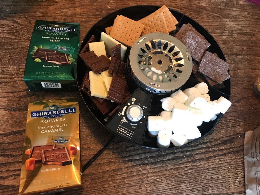 After the play we return to Candy’s house for dessert. Matt and I brought our Smores machine with fixings for many kinds of Smores.