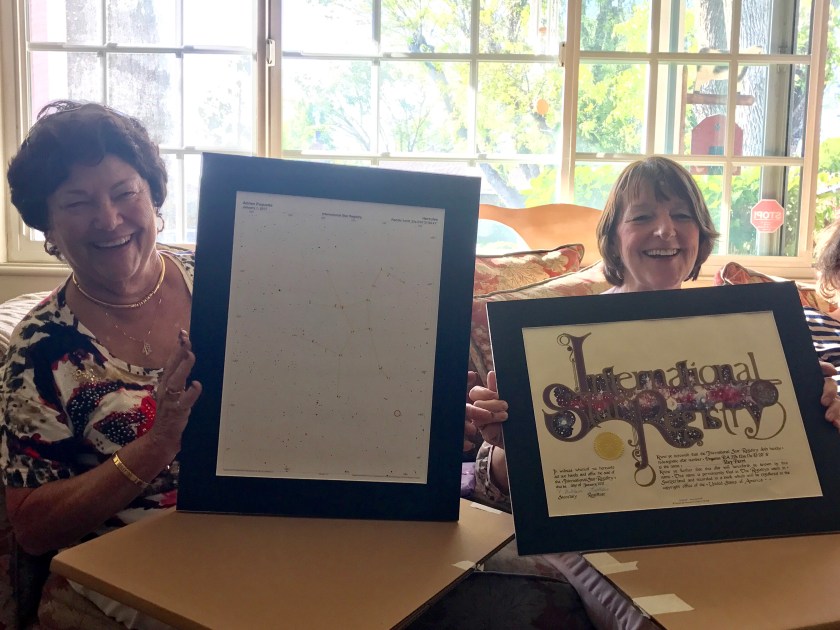 I was definitely looking forward to the gifts we got for my mom and Candy. Both ladies received notification that a star had been named in honor of my late stepdad and Candy’s late husband (and father of her kids Matt, Scott and RaeAnne).