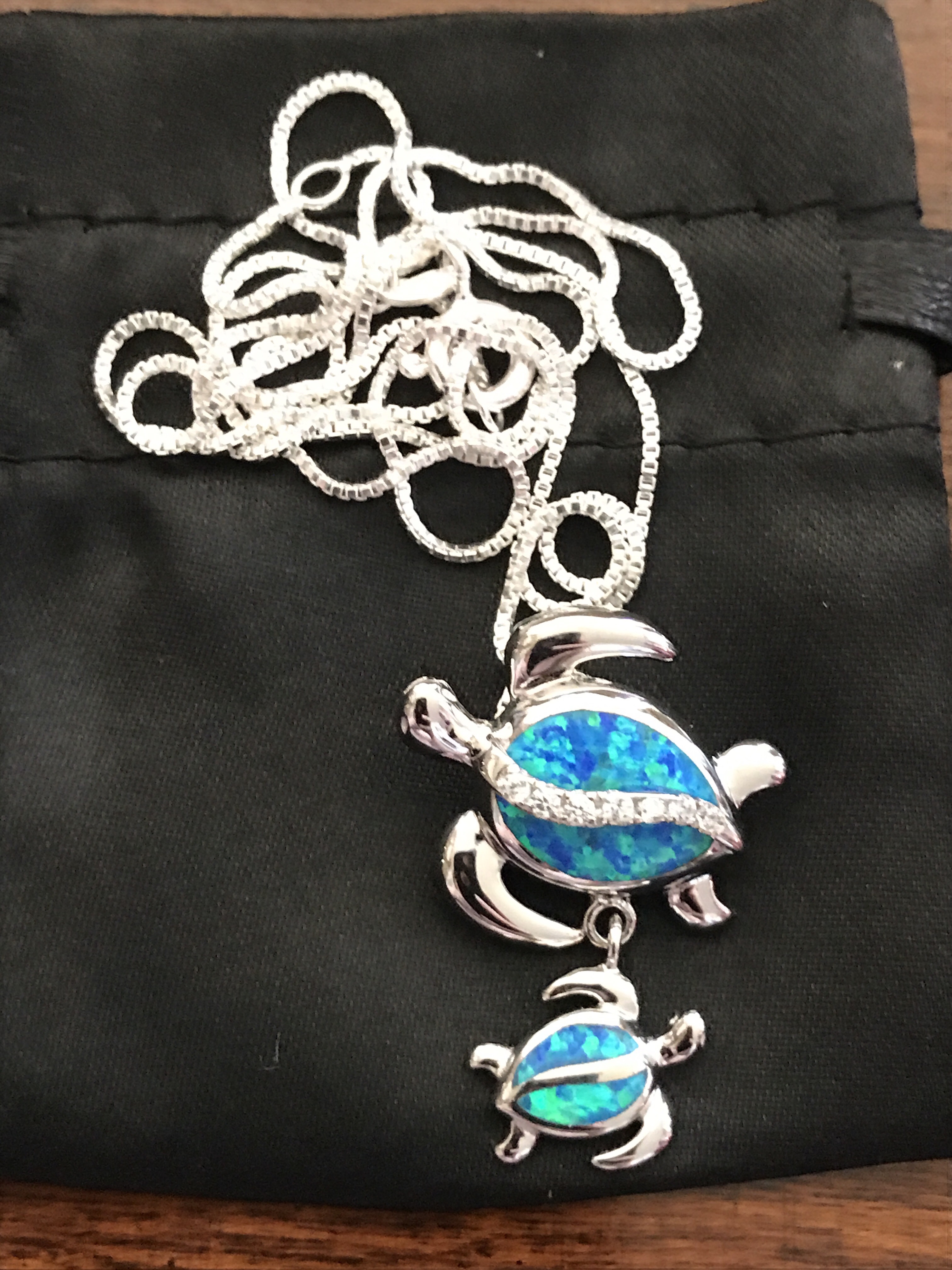My present was a mother and child turtle necklace featuring opal, our baby to be’s birthstone.
