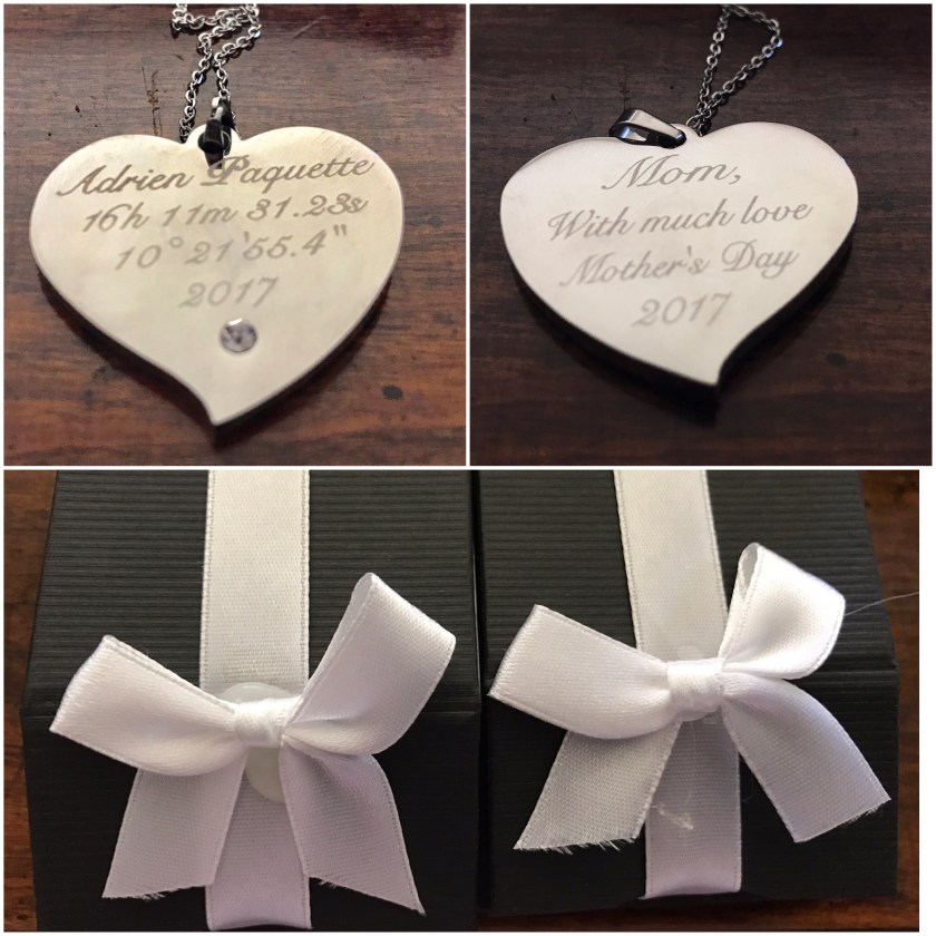 Inside the little boxes were pendants with the star coooedinates, Cubic Zirconium stone representing the stars and a Mother’s Day Message.