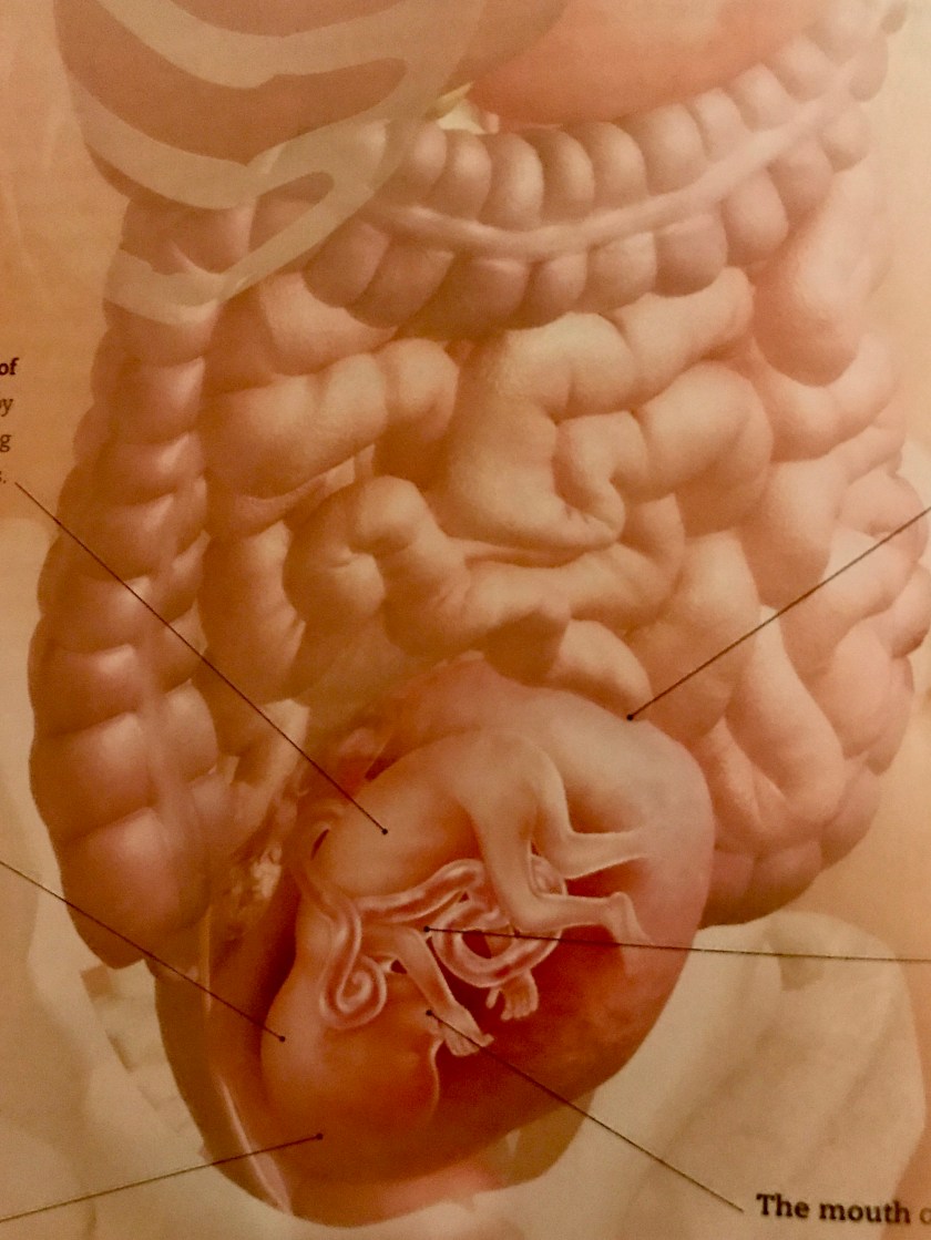 The book Pegnancy Day by Day shows the baby position down by my hip bones. This makes sense as I’ve had some minor back cramps in that area.