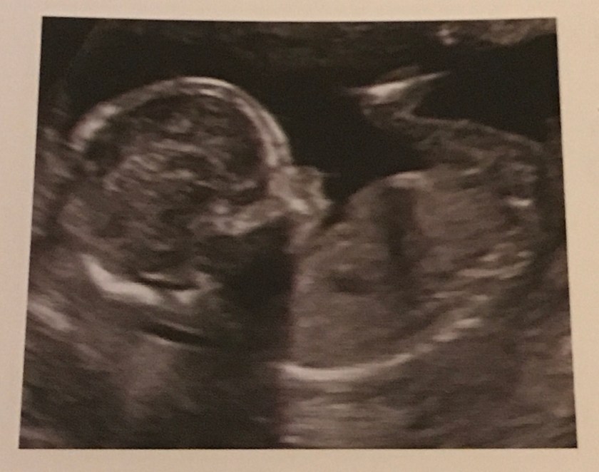 This example ultrasound shows what baby would appear like. Dr. G suggested he might only do a heart reading the next visit on Friday and not an ultrasound, so I probably will not have new pictures to share.