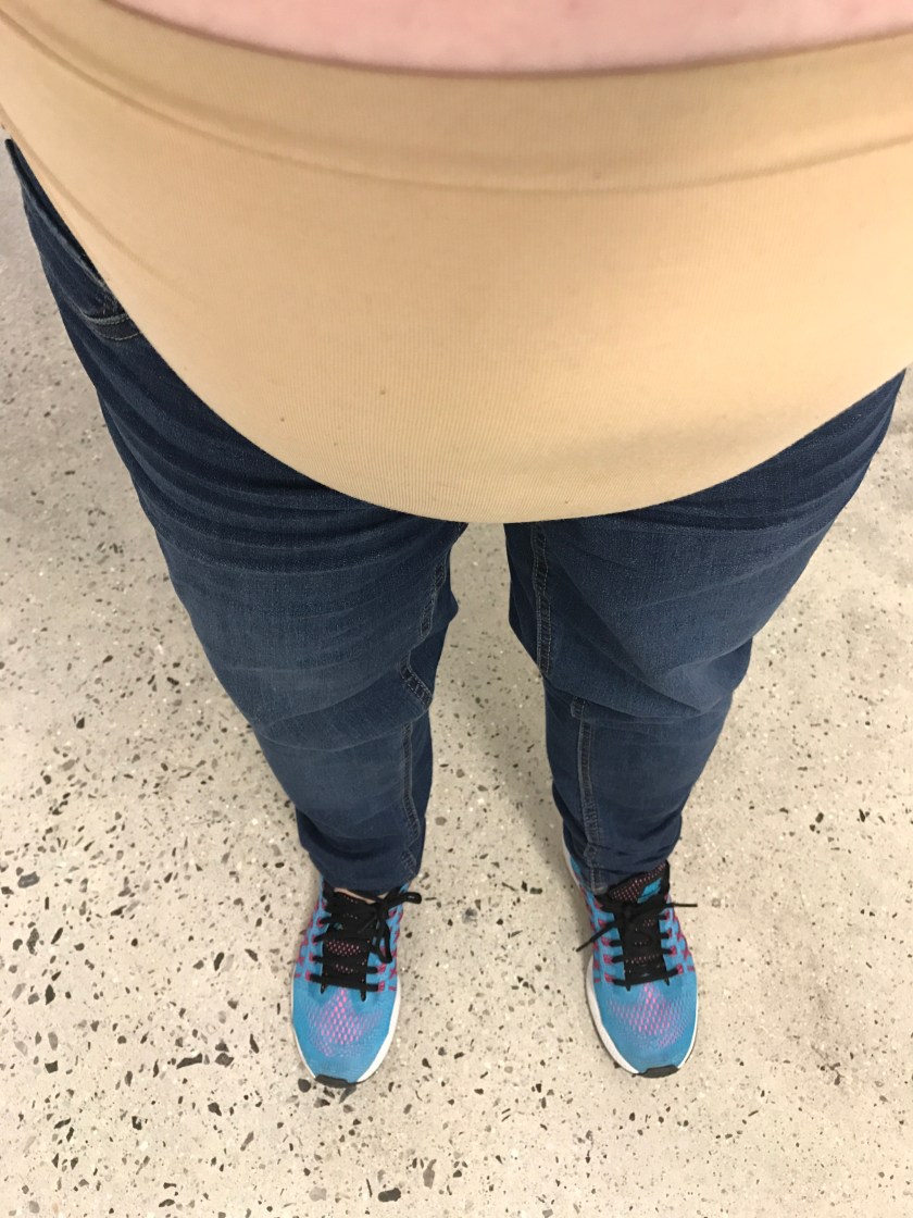The jeans do have some drawbacks. One is that at times parts of the denim rub at my legs and they feel a little weird. This may be where the jeans themselves have spandex out of necessity. Another is that the belly cover is already starting to fray. While I wear these often, sometimes 2-3 times a week, as I’ve only had them for a little over a month, this seems way too soon for them to be falling apart even in a minor way.