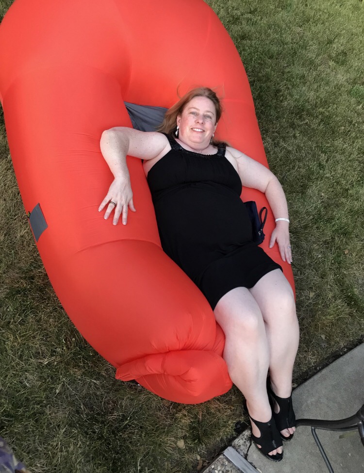 The party had quite a few seating choices and I’d been eyeing the inflatable pool ones for a while. I got in this OK, but it took two people to help me adjust up more. When it was time to get up, rather than having help, I rolled to the side and got up that way.
