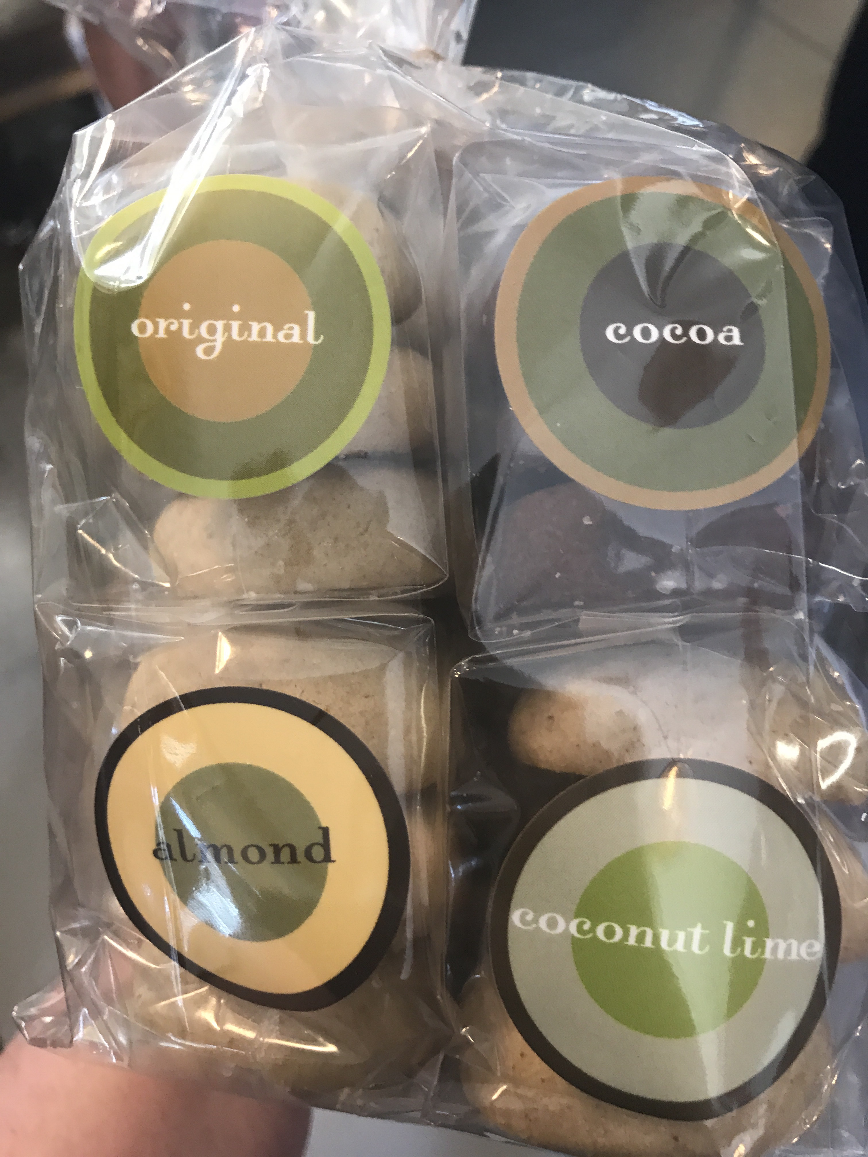 After enjoying tasting many different flavors including their seasonal coconut lime we got a mixed pack and large chocolate chunk cookies to share and Snickerdoodles for his mom. Ironically Candy had been in the area a few days before, yet was unable to get there due to holiday traffic, so us buying them for her was very appreciated.