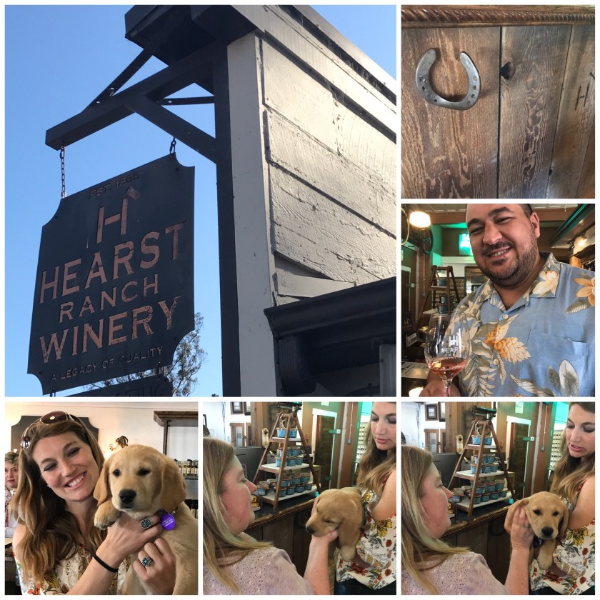 Matt had mentioned that the Hearst Ranch Winery was nearby. Though they were closing within the hour, I encouraged him to take us there so he could wine taste. The place had a fun Old West feel including having real horseshoes as purse hooks. Matt enjoyed a selection of reds while I explored the indoors a bit. Our bartender let us pet her adorable service dog in training, Vivian, remarking that though I couldn’t drink due to my pregnancy, I should get to enjoy the the company of the dog.