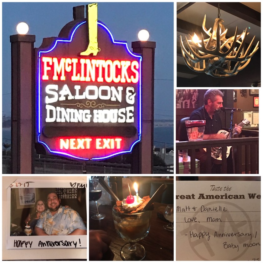 That night we went out for our official celebratory dinner at F. McClintock’s. This place had an Old West feel as well. We enjoyed live music, steaks (just steak for him, a surf and turf with lobster tail for me) and being together. This meal was made more special with a card and gift card from Candy and the stay singing Happy Anniversary to us. They even gave us a polaroid photo that we had the option of donating to their large collection displayed all over the front, yet we liked it so much we decided to take it with us instead.