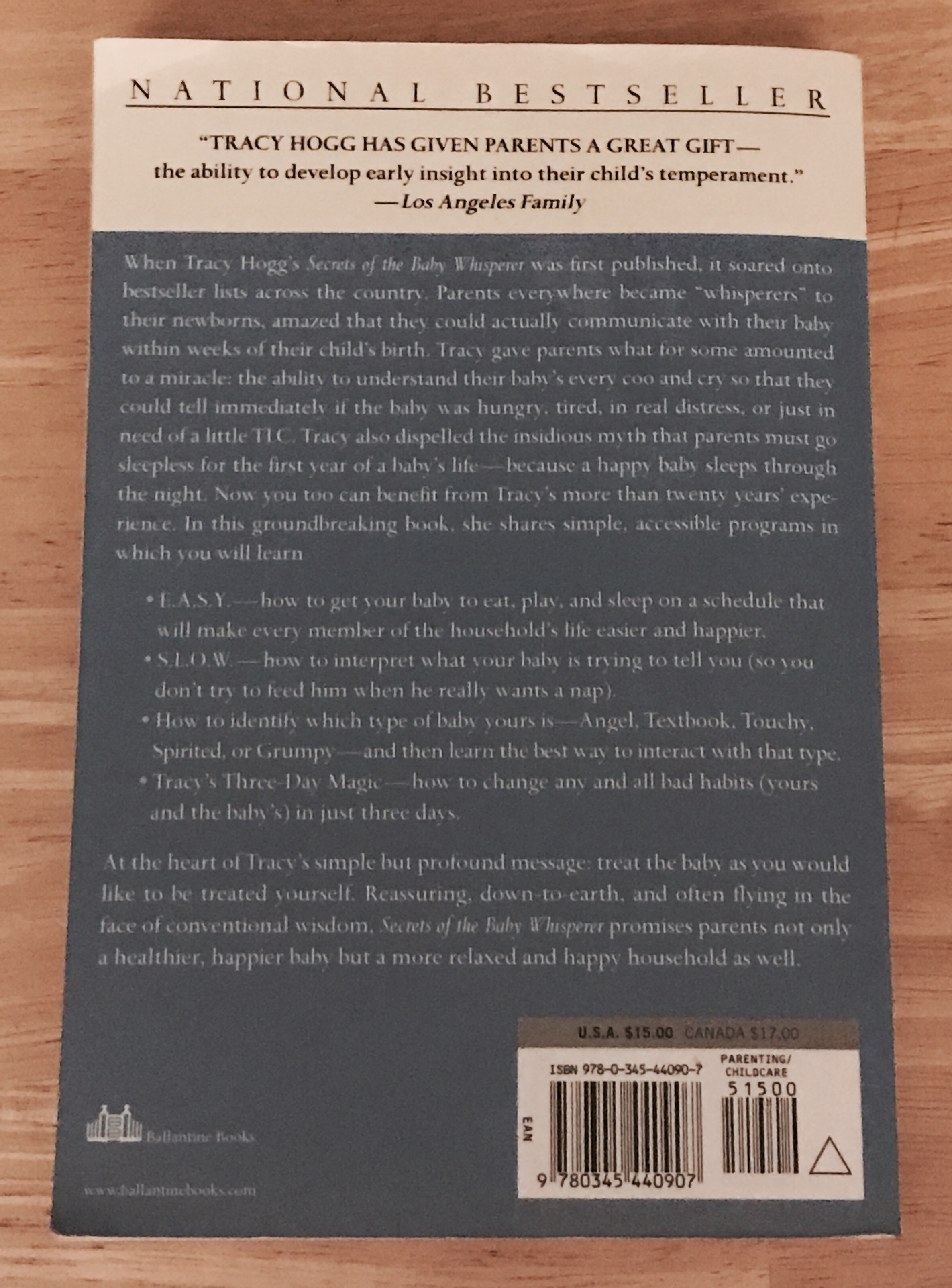 I’ve been intrigued by the concept of this boo ever since I bought it at a used bookstore on our babymoon getaway. In this book Tracy Hogg, classifies most babies as being in one of five types: Angel, Textbook, Grumpy, Touchy and Spirited, though some can have characteristics of more than one type.