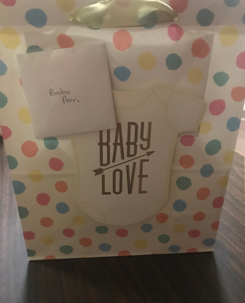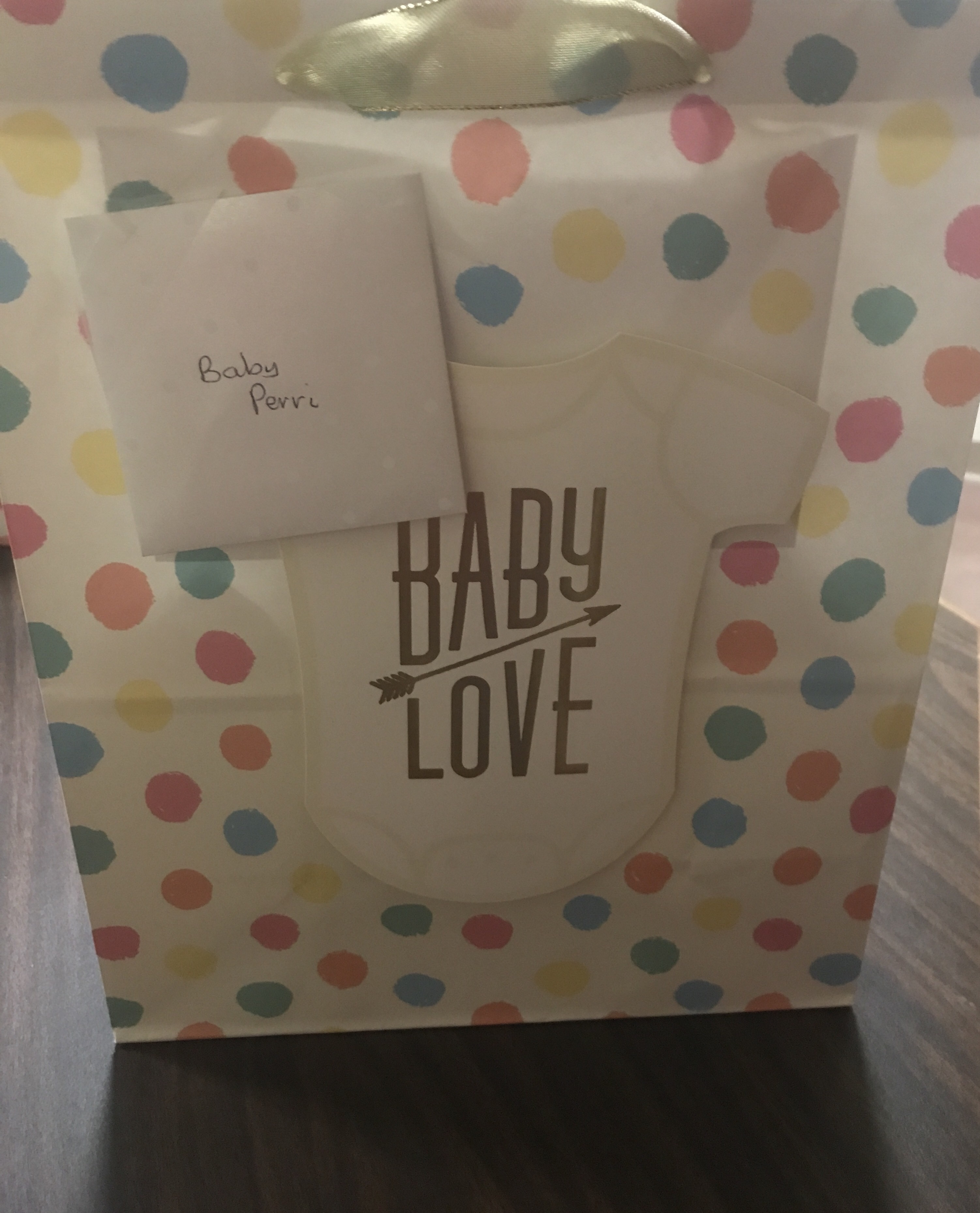 Pastor Jane had emailed me earlier in the week to tell me there was a gift for our baby in her office. She described the package and it was right next to a similar one with another baby’s last name on it.