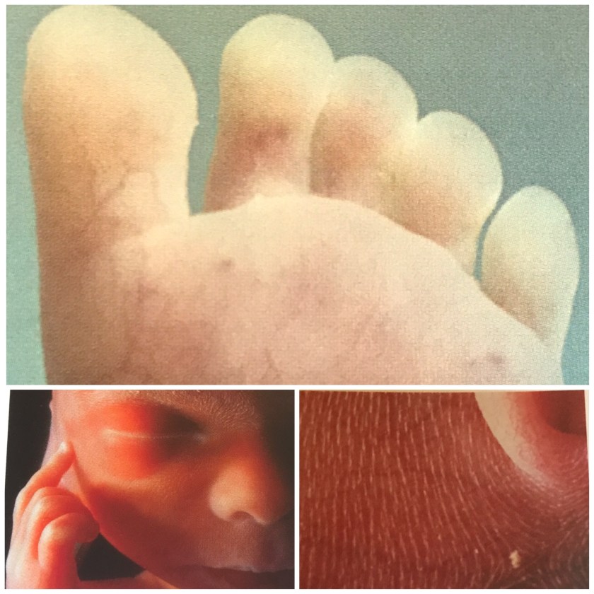 Baby’s skin grows even more intricate and sensitive this week. If i press on the right spot of myself baby may even press back. As the baby has seemed to get more active to certain tastes and music every so often, this will be fun to experience as well.
