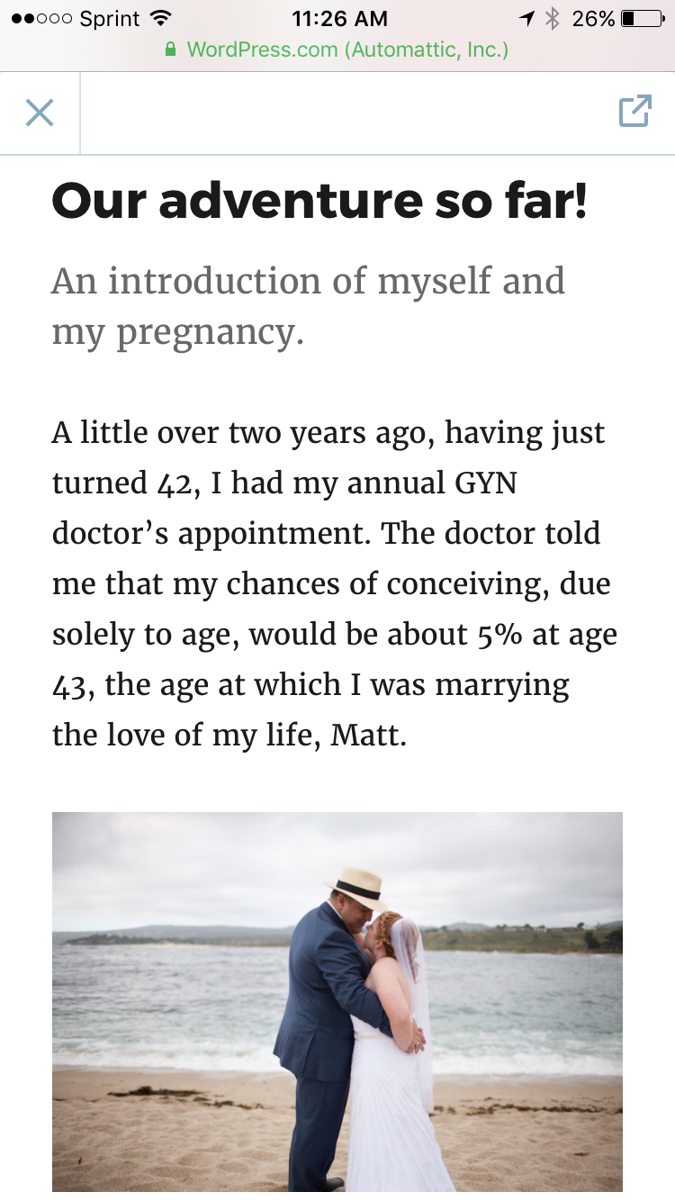 My very first post was soon after I was nine weeks along. The blog morphed in part out of letters I was writing to our baby to be given to him or her someday perhaps in response to question s/he has about when s/he was a baby or about early childhood. I’ve thought about putting snippets of those letters on here and will do some at one point. I have plans for this blog that I haven’t yet put into place including a custom layout design instead of a template. This is the third template I’ve used and the best so far, yet I have so many ideas that a custom look would do better when it is time.