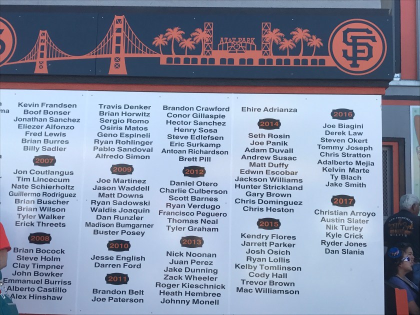 Inside these panels show the names of players who were called up to the SF Giants. This is always a favorite spot of mine to see.