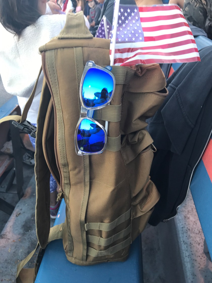 A young family was next to us. To my delight the dad had a Tactical Baby Diaper Bag on it, one of the ones I’ve researched and put on our registry as it would work well for Matt or for me. The dad told me that even though his daughter was now five, he still uses it to transport family things.