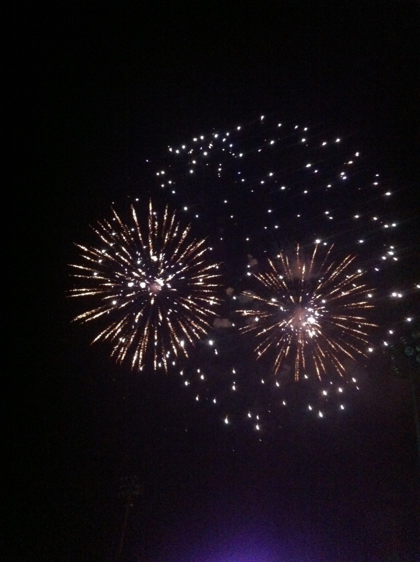 My photographs of fireworks over the years have been hit or miss. The one above was from our 2013 game, the only one I took that day. Last year I remember running out of battery power before the fireworks began, I was much more careful with it this year to be able to take more photos.