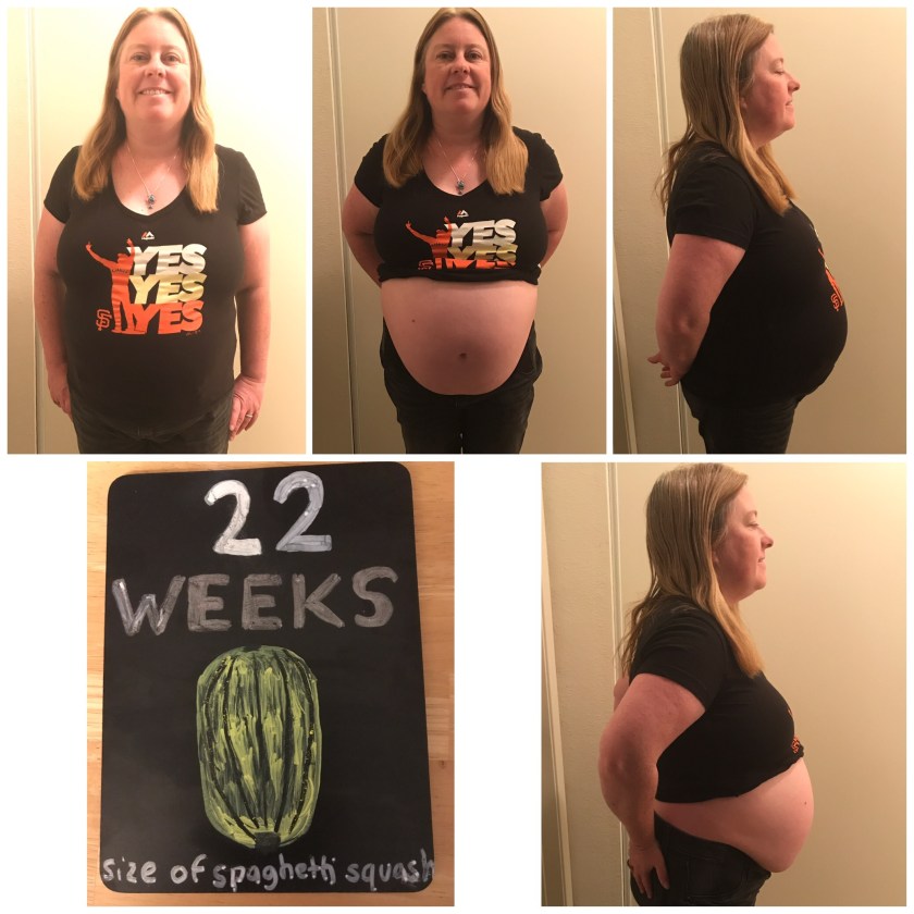 In each of the photos for these weeks I wore some of my favorite shirts. At 21 weeks I wore my Maui whales shirt from our honeymoon. I’ve read about a small number of babies being born this early and surviving, however, the number is low so I was thrilled to reach the next week.