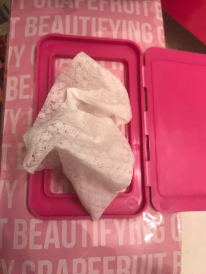 Afterwards I used the cleansing wipes on the right half of my face. Most of the markup came off easily. I didn’t realize I had taken such a serious expression until later.