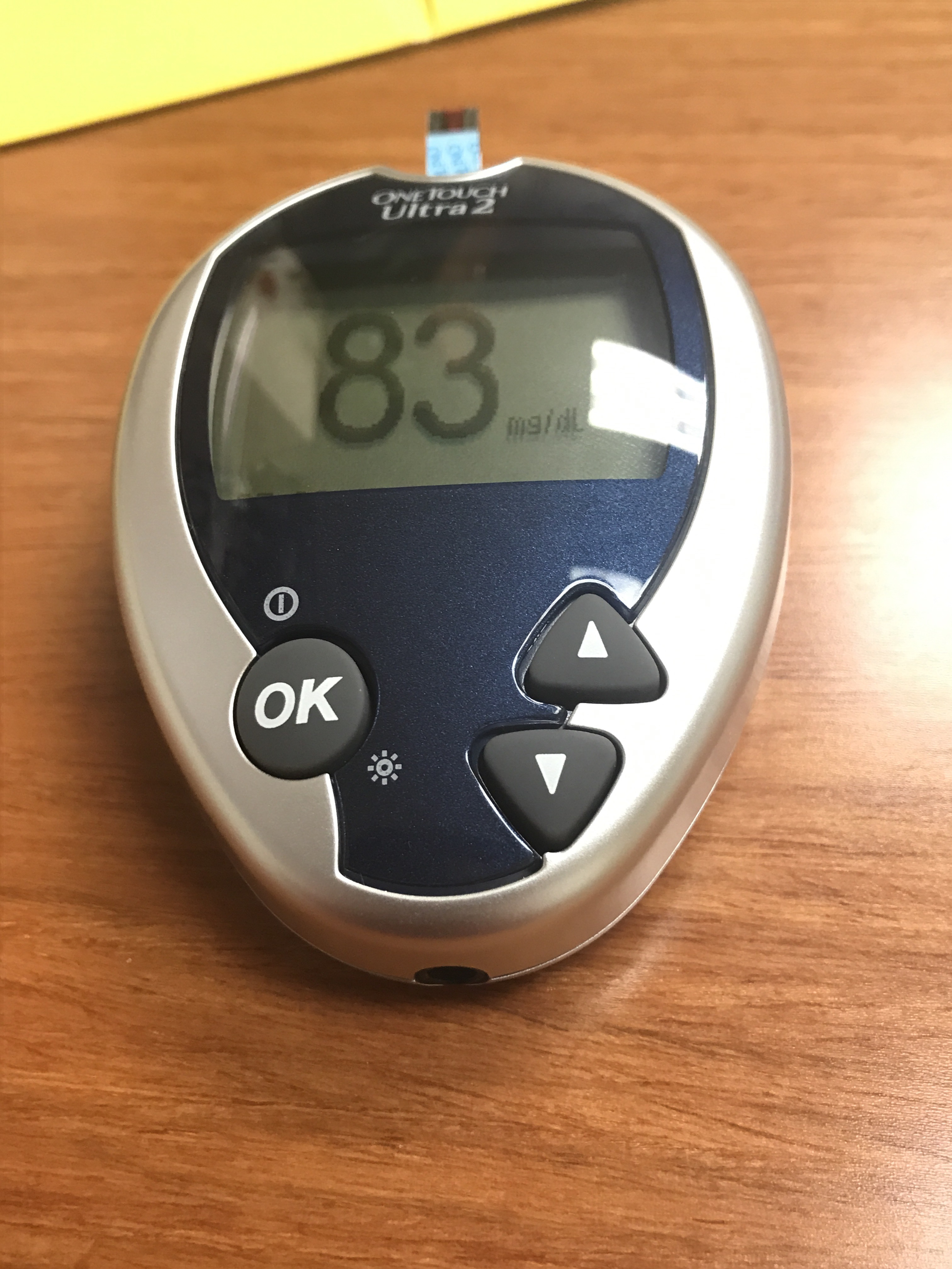 For the last twenty minutes or so we went over the Glucose Meter. Since my appointment was so close to the day it was scheduled, it was not possible to know which meter supplies insurance covered. So I was given the OneTouch Uktra as it is easy to use and has relatively inexpensive supplies on Amazon. I did like the discreet pouch it comes with for travel.