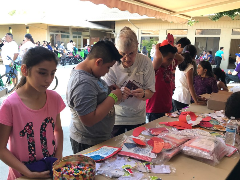 Last night I was one of many volunteers invoked with National Night Out, a free community event. While each community has different activities, our church, Almaden Hills United Methodist Church also gave out backpacks with school supplies to families with children in need.The backpack giveaway was the highlight of the evening.