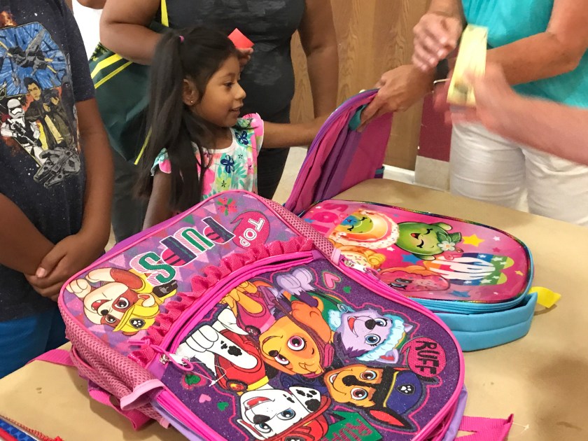 We ran out of backpacks for girls sooner than those for boys and this was even with a few girls choosing Mickey over choices like the ones in the photo above and below.