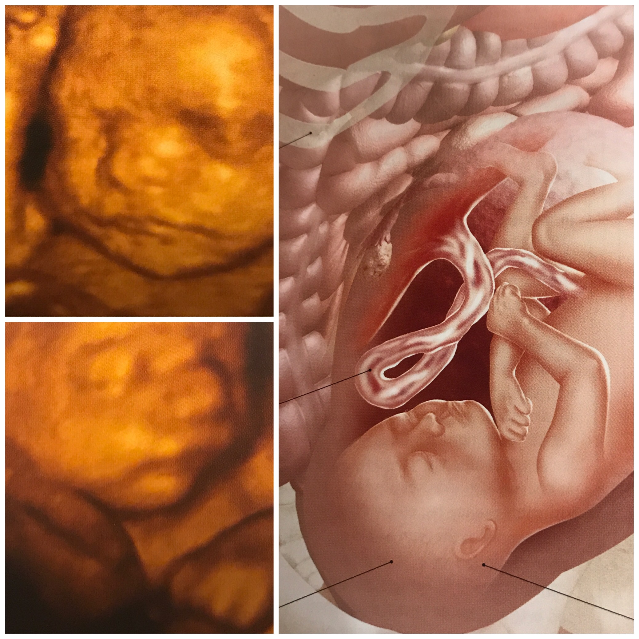 This week our baby’s eyes, which now have lashes, also have the ability to blink.