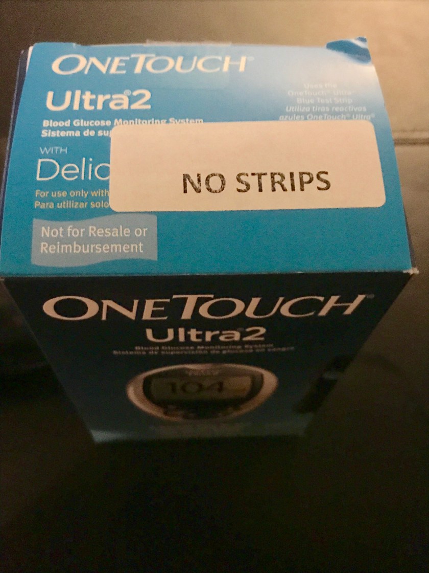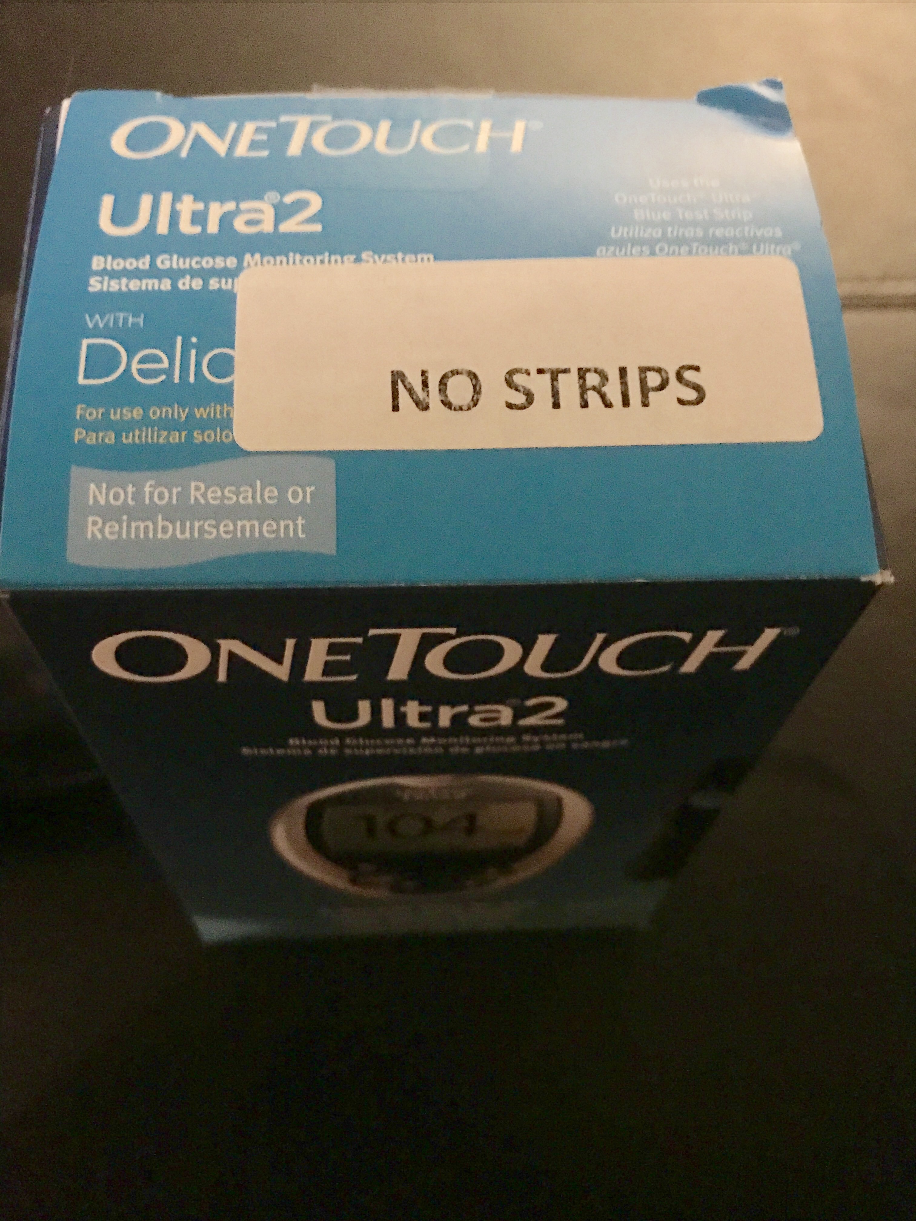 The box is clearly labeled that there are no strips included.