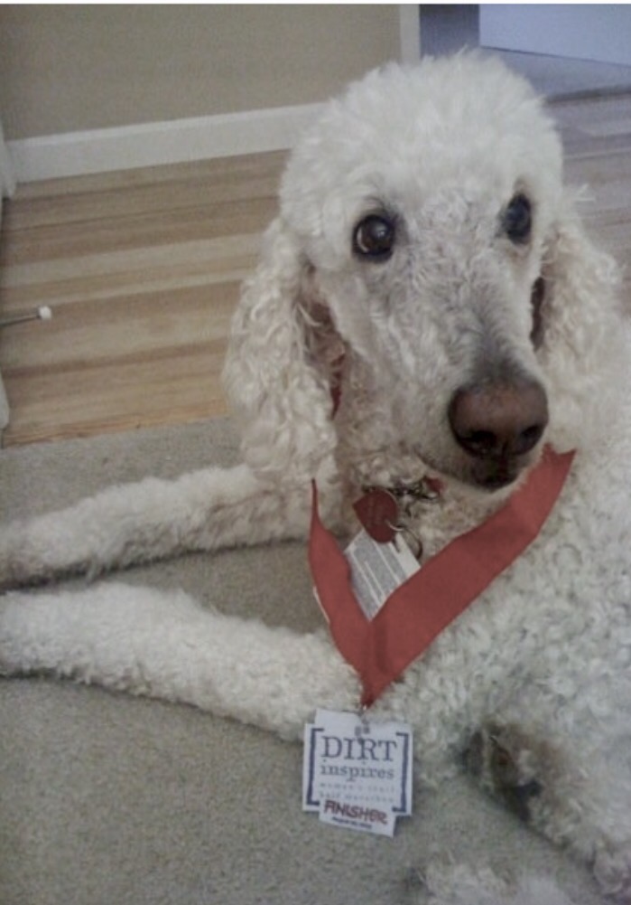 I am not a fast runner, and certainly was not then. I literally was one of the last 10 people to finish the race, yet finish I did. Afterward I got a medal which instead of taking a photo with me wearing it, I put on my friend, Brad’s dog, Riley. Brad was kind enough to let me hang out with him for a few hours recovering and Riley has no idea why she was wearing a medal.