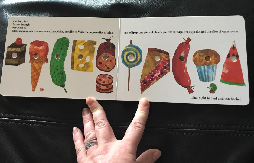 The caterpillar even had to eat a lot less the next day, something parents may take a few moments to adlib and explain to their children why they, too might eat less after eating a lot the day before.