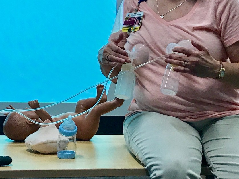 Laura also showed us some great techniques for using breast pumps as many of us would be returning to work and would need to pump and nurse both in a single day.