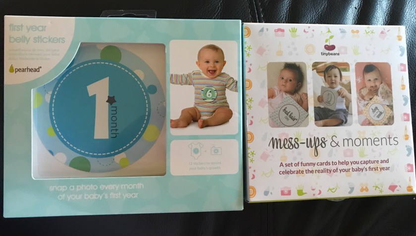 Pearhead makes a set of first year stickers to record month by month photos which was one of four items in my last Bluum box. This was an interesting addition to my box as I had received a somewhat similar item from Bluum in the box I received the previous month. In this review I will discuss this and the similar item.