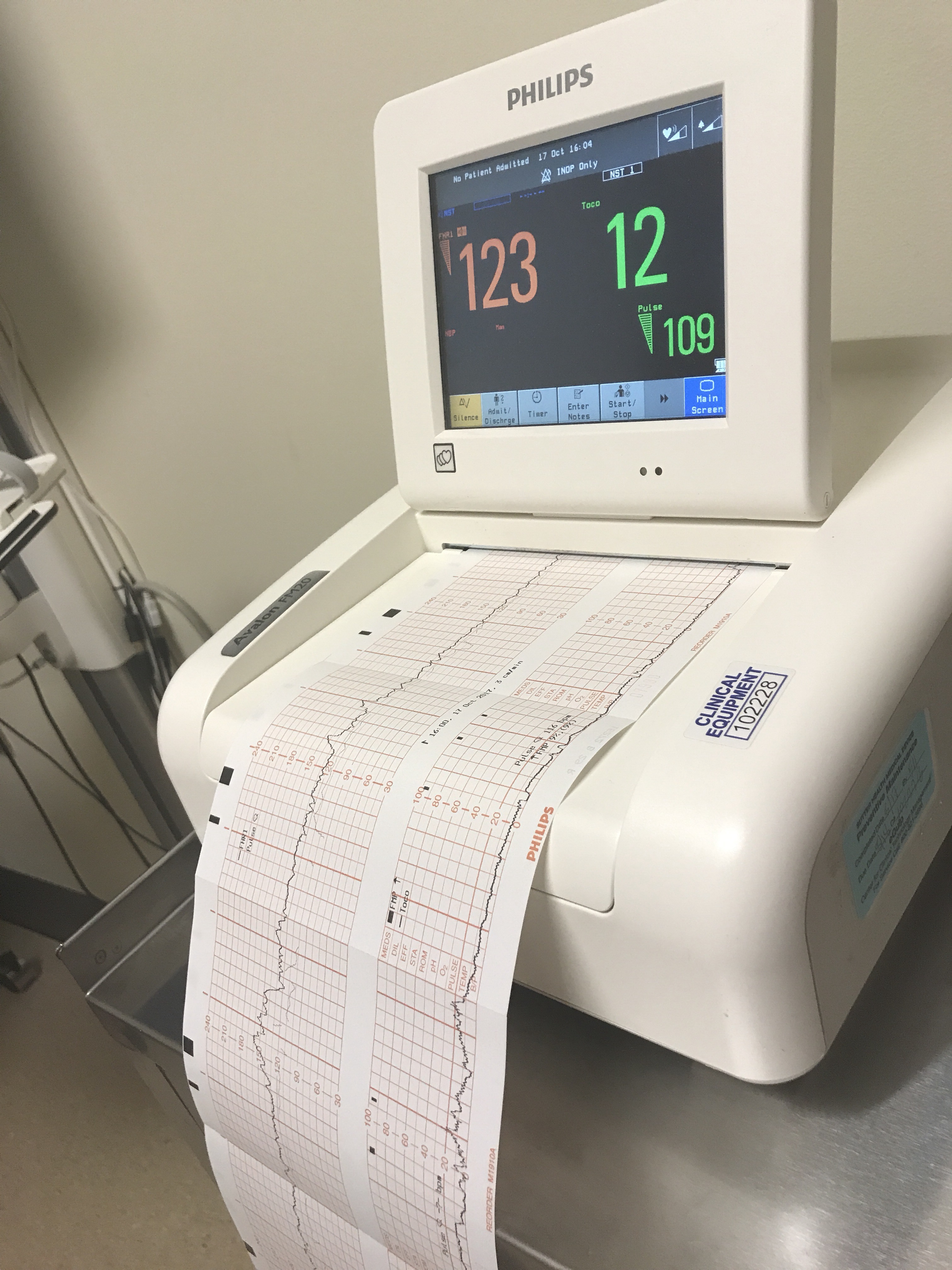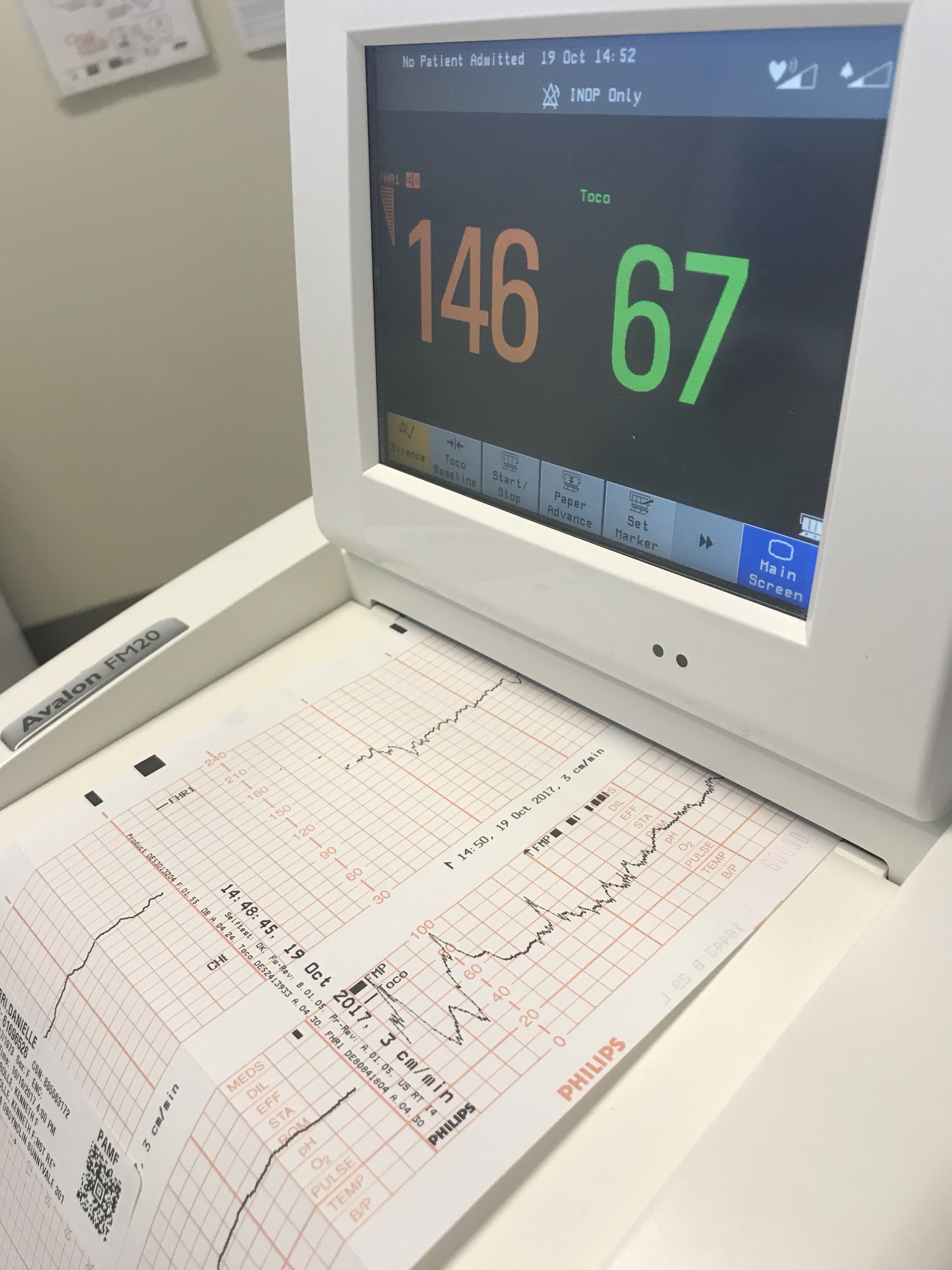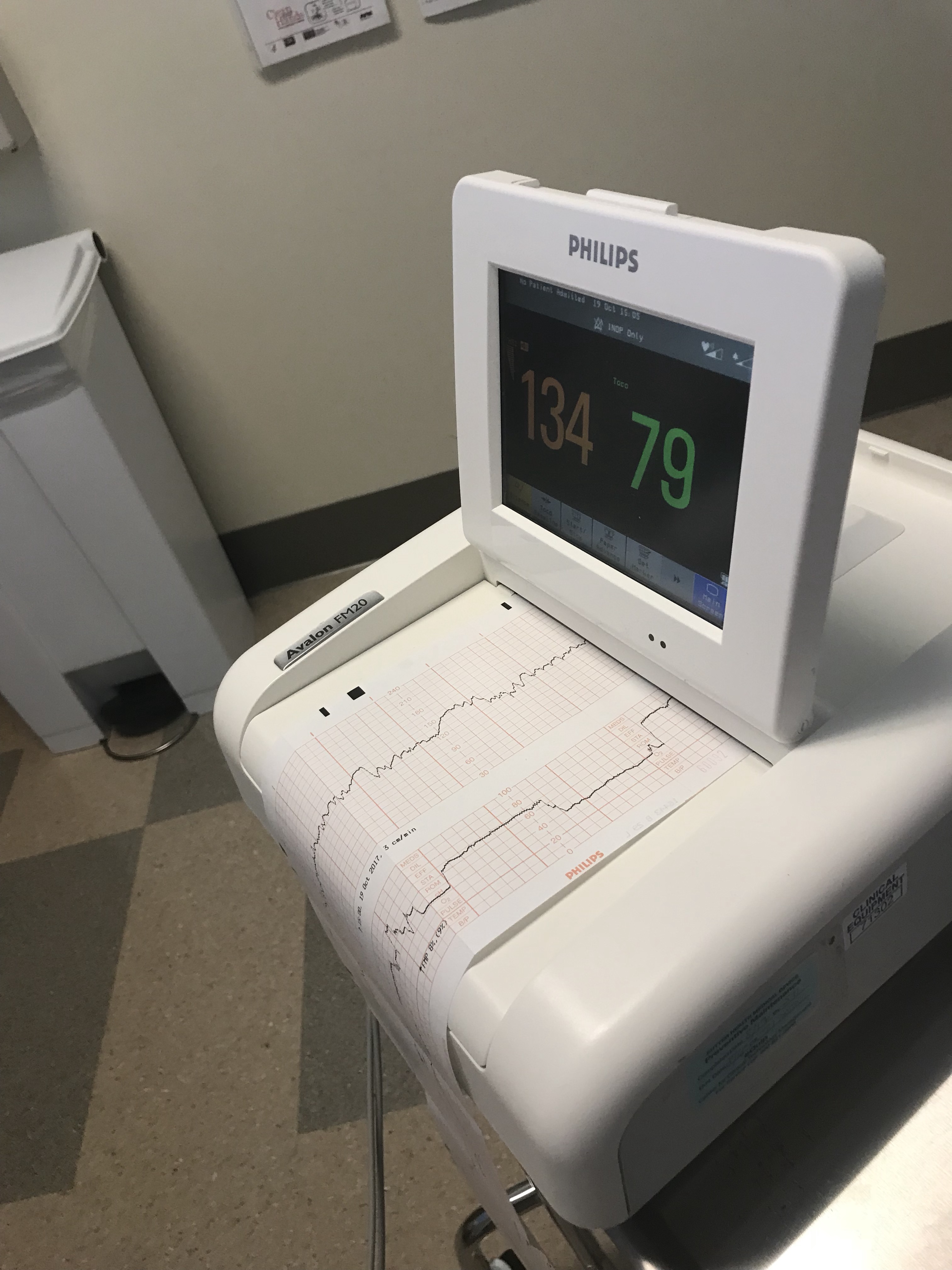 The baby moved around so much at the test. I saw some of the highest heart beat results I’d seen from him or her and my uterine contractions were higher much of the time as well.