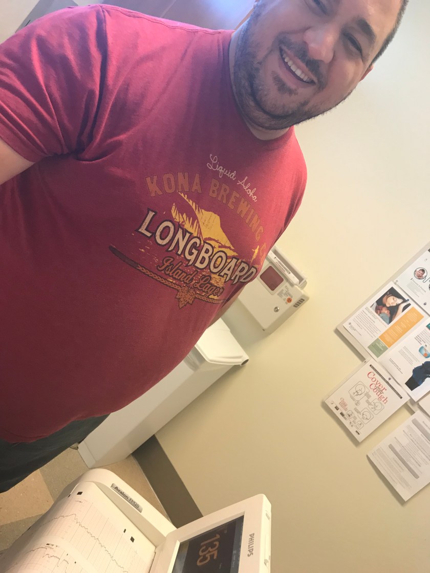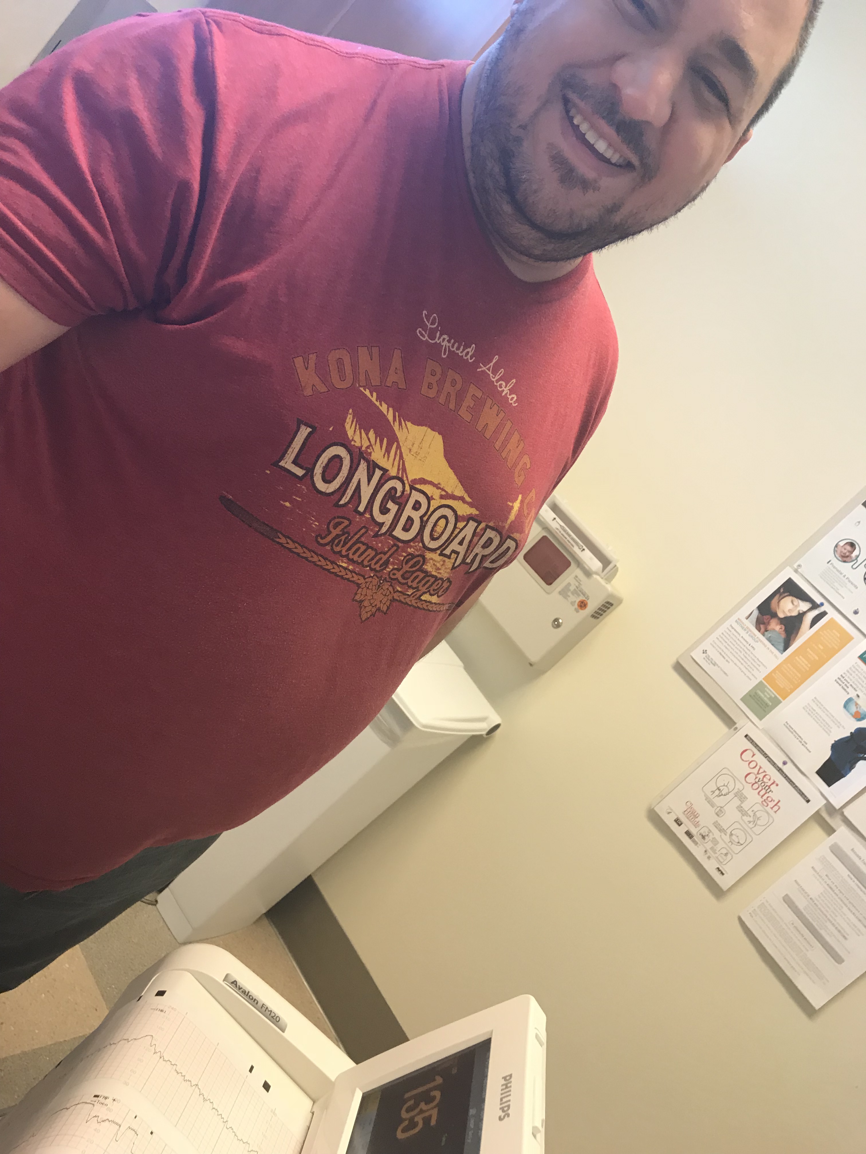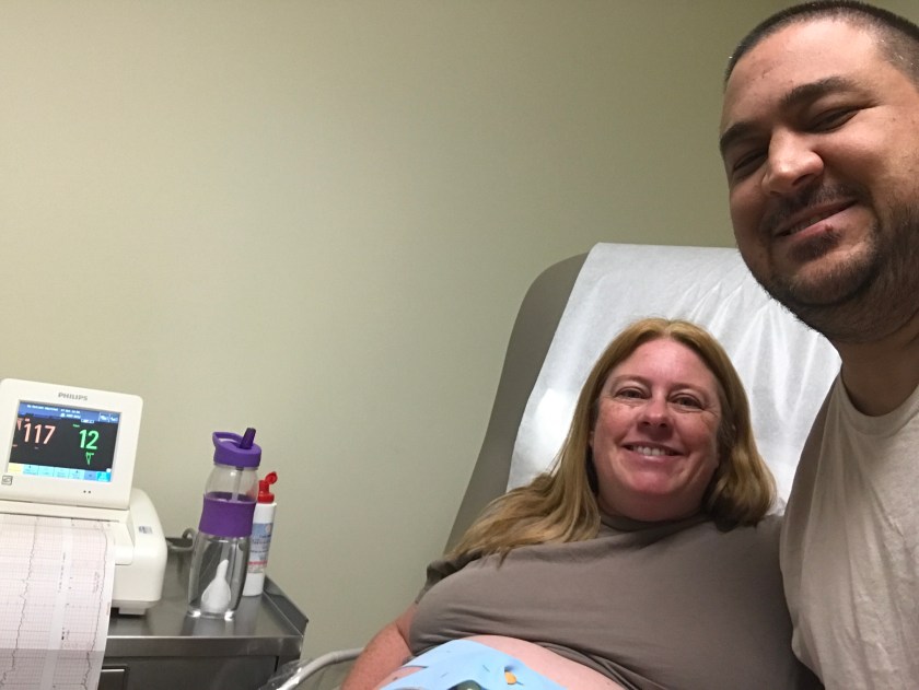 This week I had my last two NonStress Tests (NSTs) with Dr. G. Since I was down to my last two appointments I sure to get a quick picture with Candy. As is nor uncommon for me I blinked, yet I like the expression on our faces, so in that way it’s a good photo of the two of us.