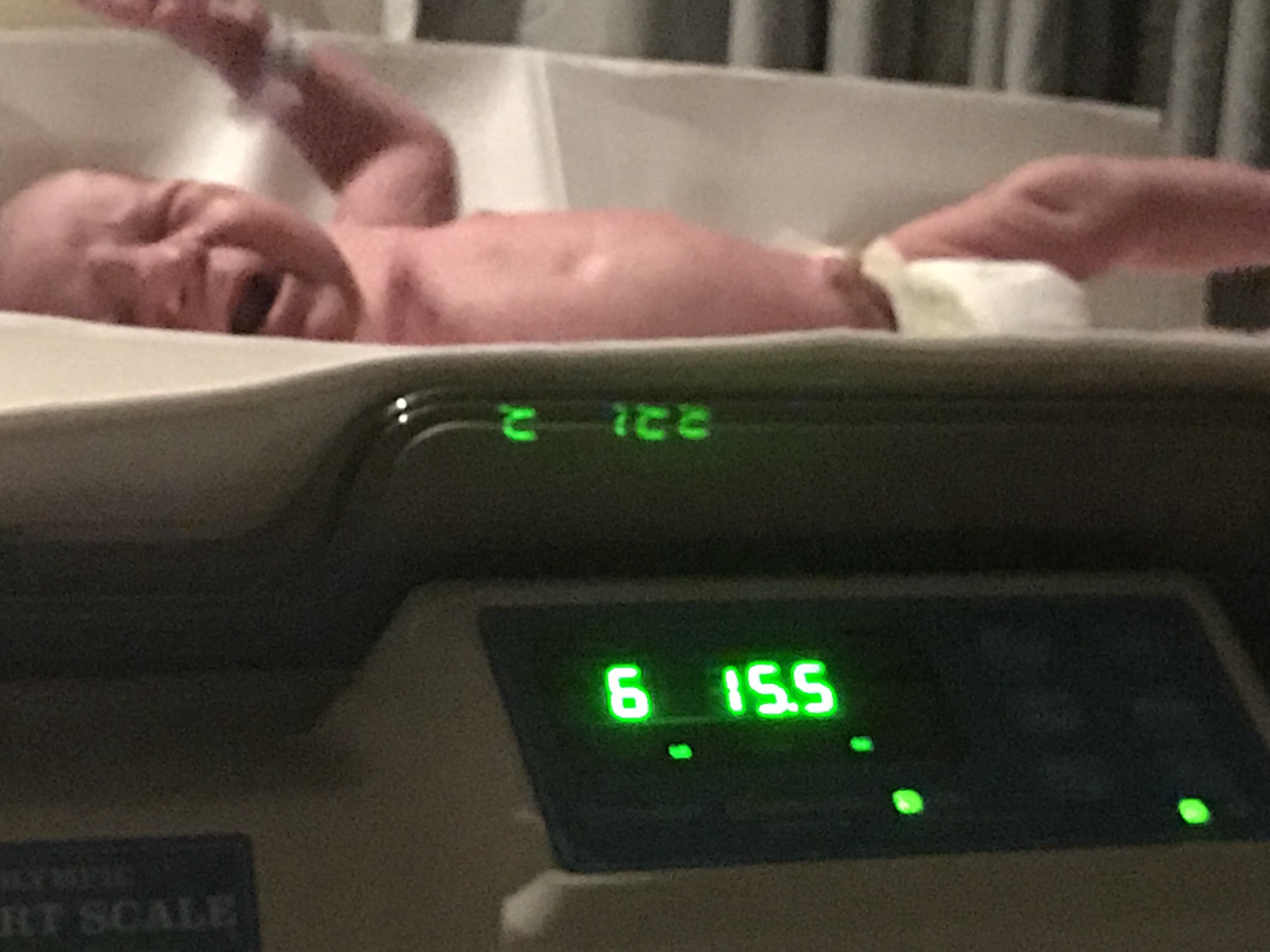 One of the last tasks before we were released was to check his weight. As most infants do, he’d lost some weight after birth and was slowly putting it back on, a healthy sign.