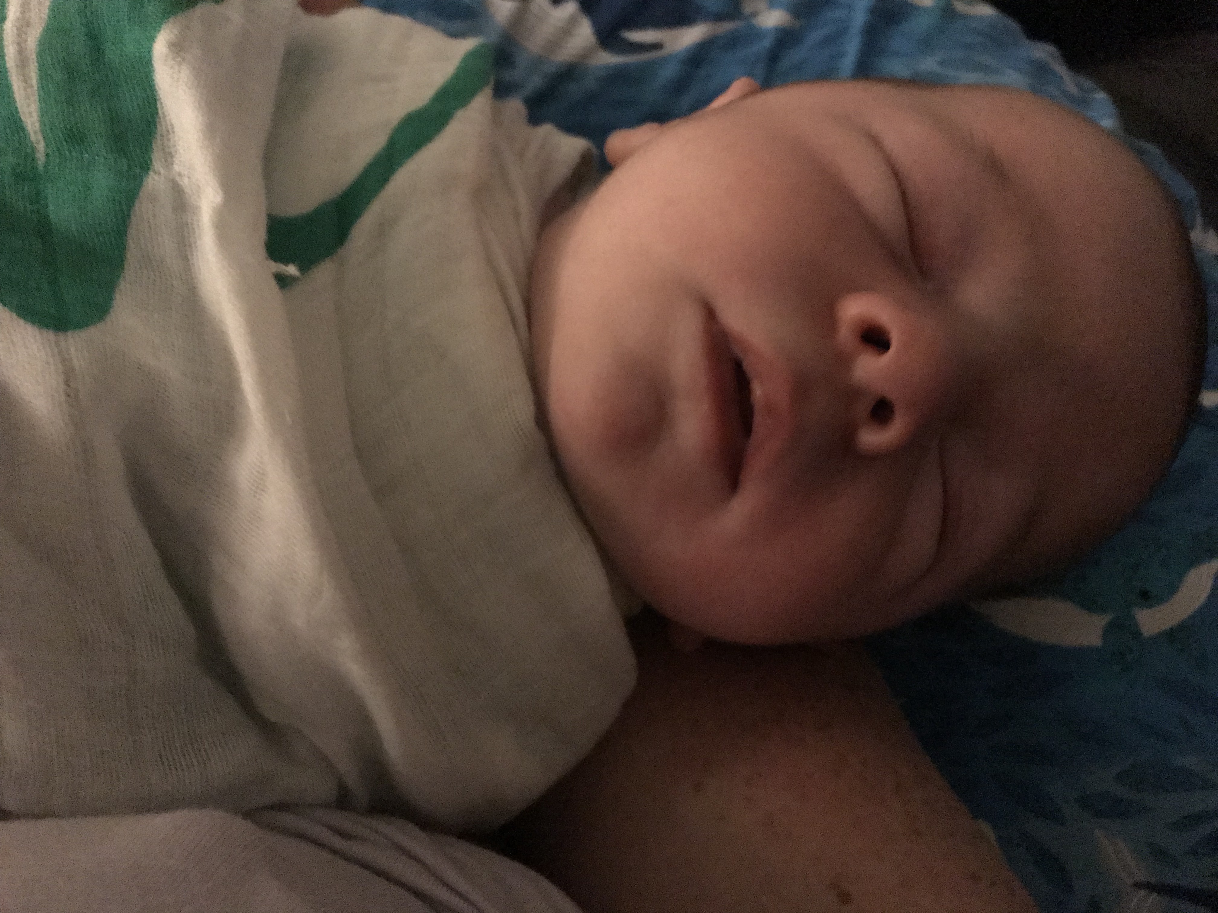 Almost everyone, from nurses to authors of books I’ve read to parents we know in real life have told us that swaddling is the key to getting a baby to sleep. One thing few people have mentioned is that some babies, like ours, love to break out of the swaddles. William has broken his arms out of just about every swaddle I’ve made him, many Matt, a much better swaddler than me, has made, and even out of a few the nurses in the hospital made.