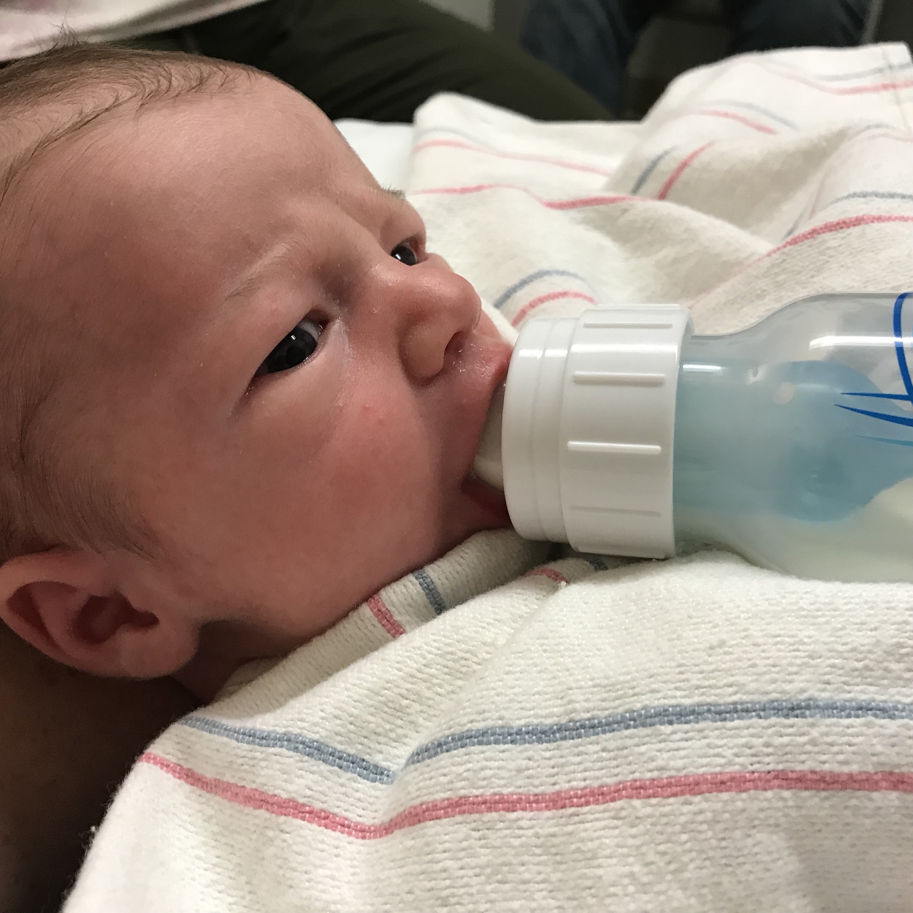 One of the best indicators of how feeding is going for a baby is by weight. As is typical, our Lactation Consultant, Donna weighed William several times throughout his appointment. With just a diaper on (with a negligible weight, yet it also is weighed and subtracted), it is apparent he is gaining weight. Still, as the goal is for him to be weaned off formula and take in only breastmilk as soon as is possible and beneficial for him, we are hoping a lot of that weight gain is not from formula. He is currently getting about eight ounces of formula over two feedings, so most of his feedings, six or so daily, are entirely or in large part made up only of breastmilk.