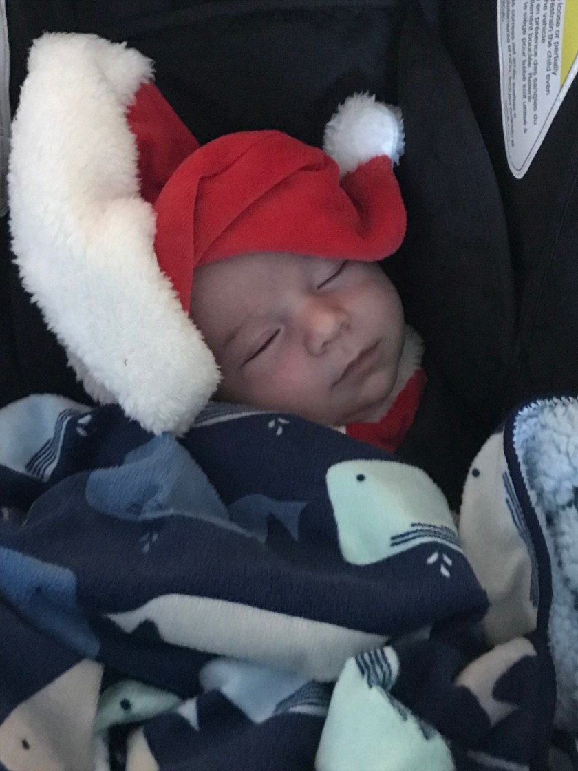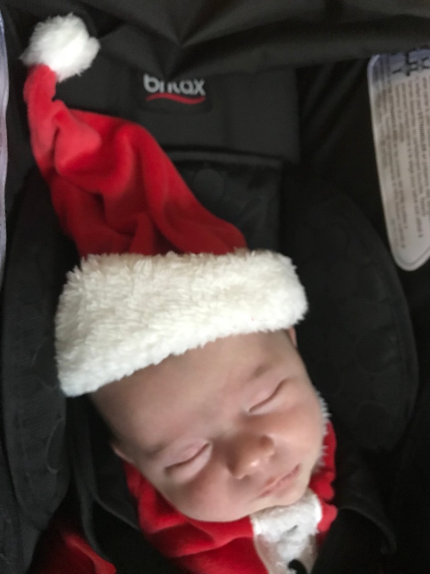 With two parents who love to take photos, William’s first visit to see Santa was an occasion to be dreamed of and planned well in advance. I learned the local Santa was part of a system where an appointment could be booked in advance, so we booked him an afternoon time for yesterday. I love this grumpy little expression on his face when Candy, Matt and I first set out.