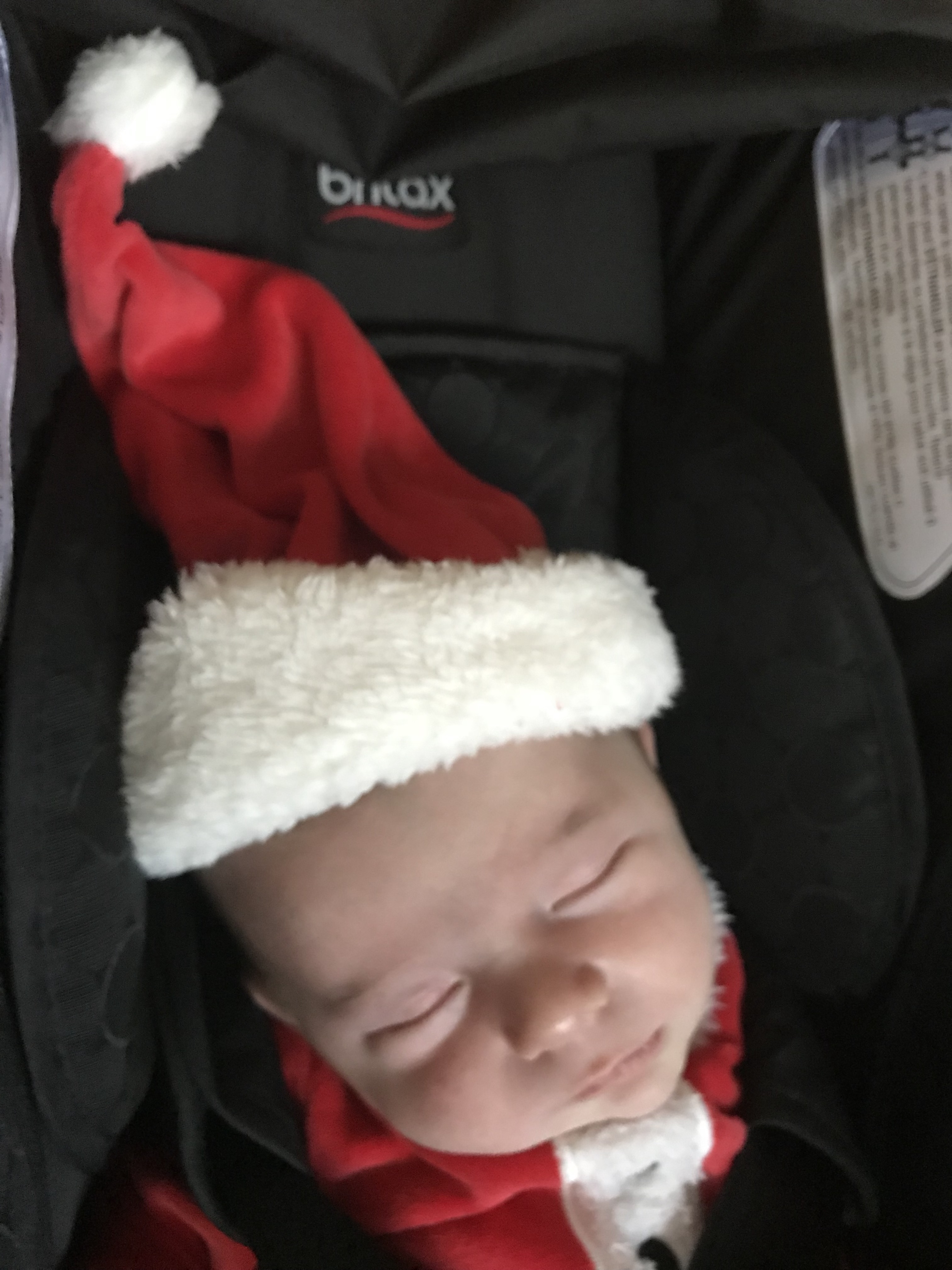 As usual the car ride tired him out. He didn’t even notice when his hat was put on him.