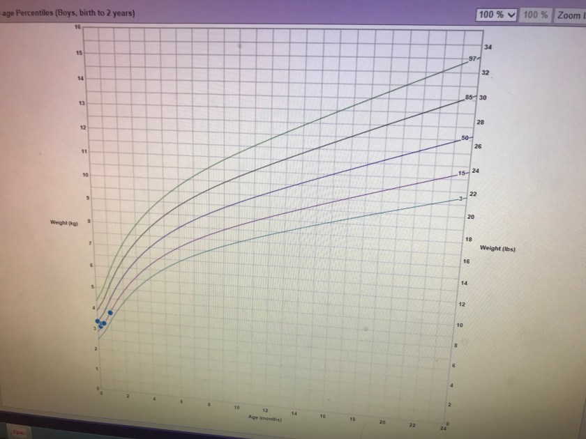 Dr. V showed us how William is continuing along the same weight curve he has been since his second office visit. He said that while there are ways to get him on another curve, such as by giving more formula (the exact opposite of my goal), he wouldn’t recommend them for many reasons. Dr. V says his main goal is to get William to his 18th birthday, healthy and happy.