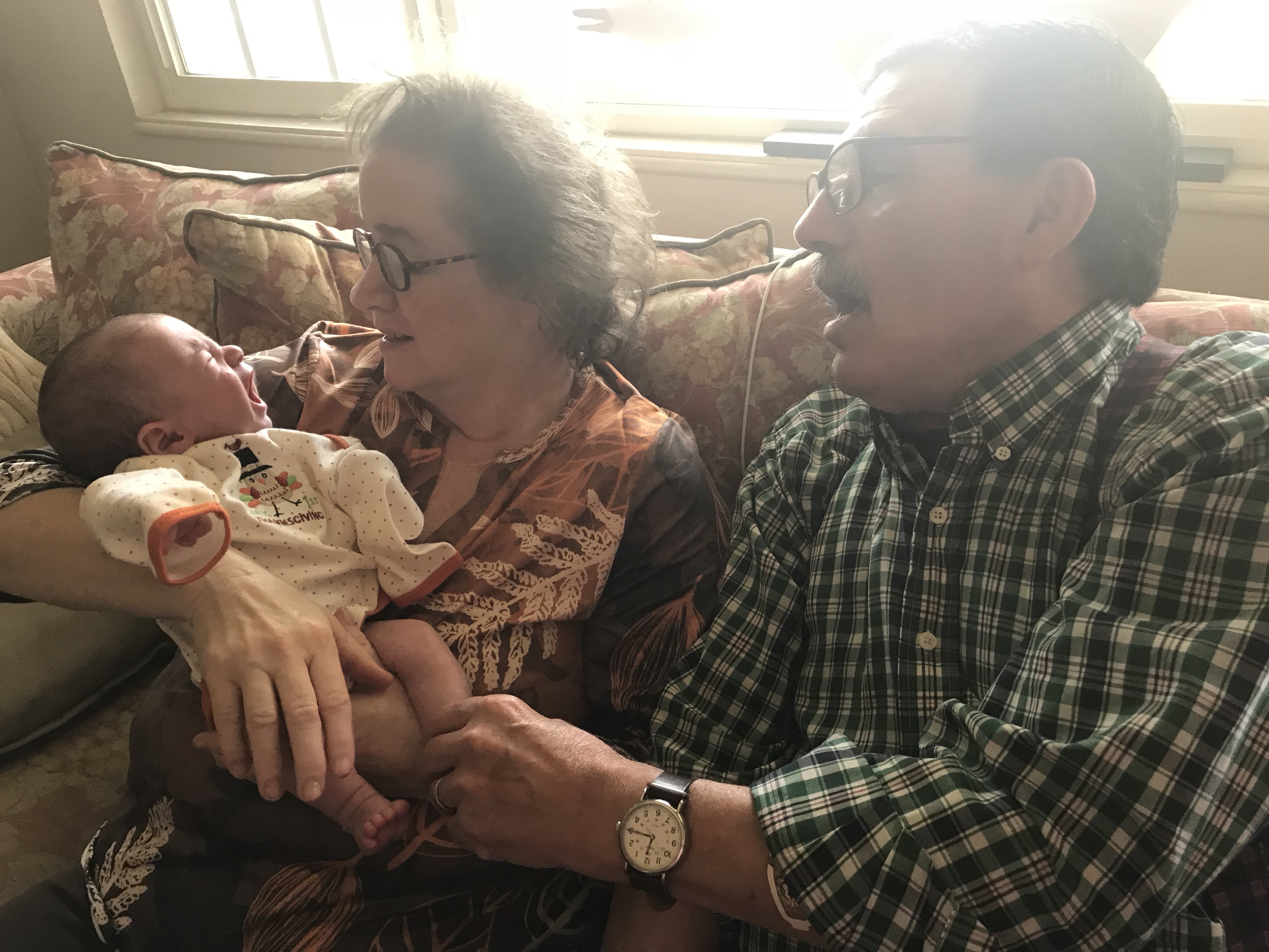 William was fussy with tiredness, yet Jennifer and John still enjoyed visiting with him.