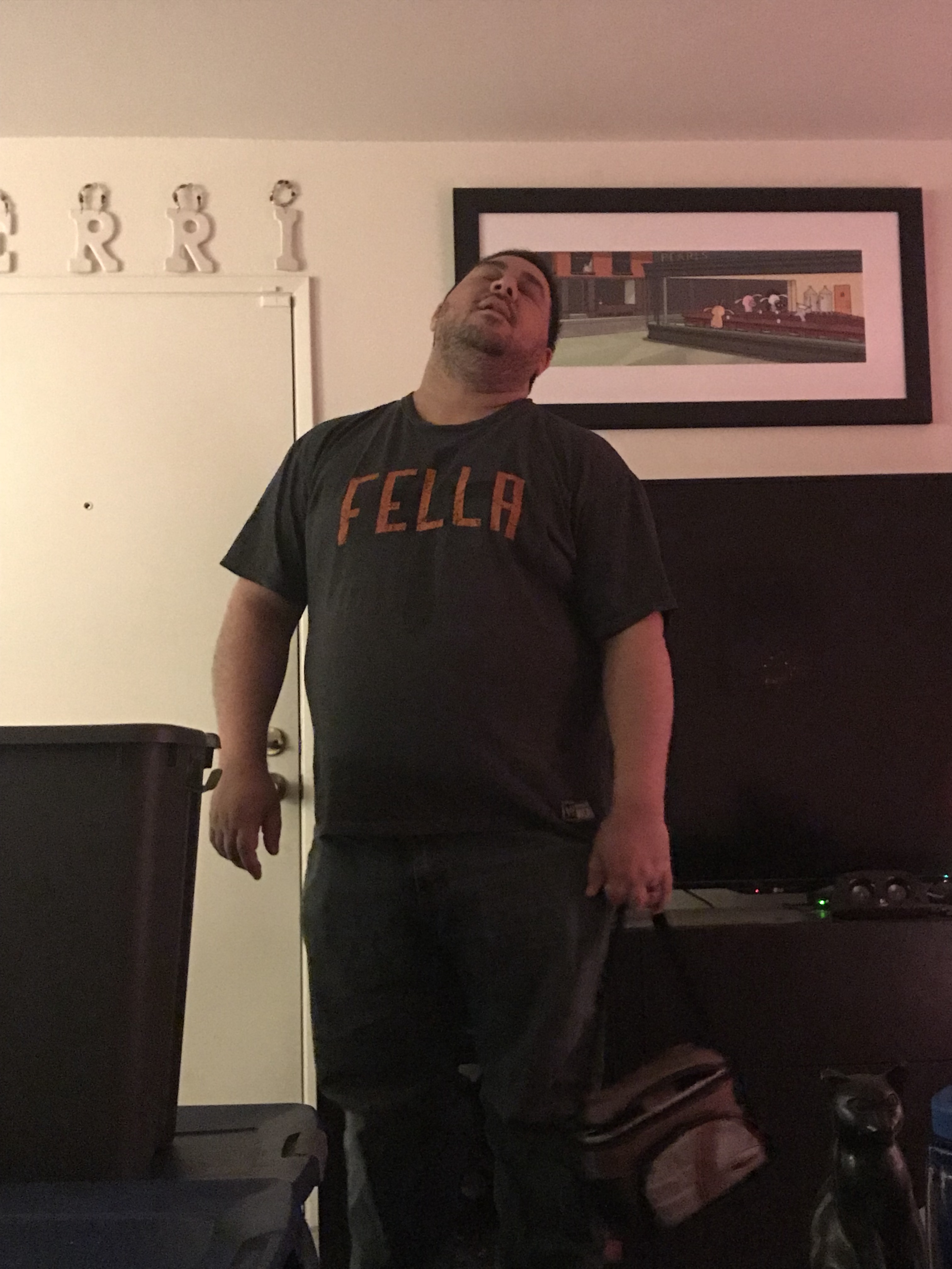 William still has not figured out that night time is sleep time. He also likes to feed every three hours including overnight. So Matt and I had not had a lot of sleep on Sunday night. When I asked Matt if he’d had enough sleep to go back to work, the photo below shows his joking response.
