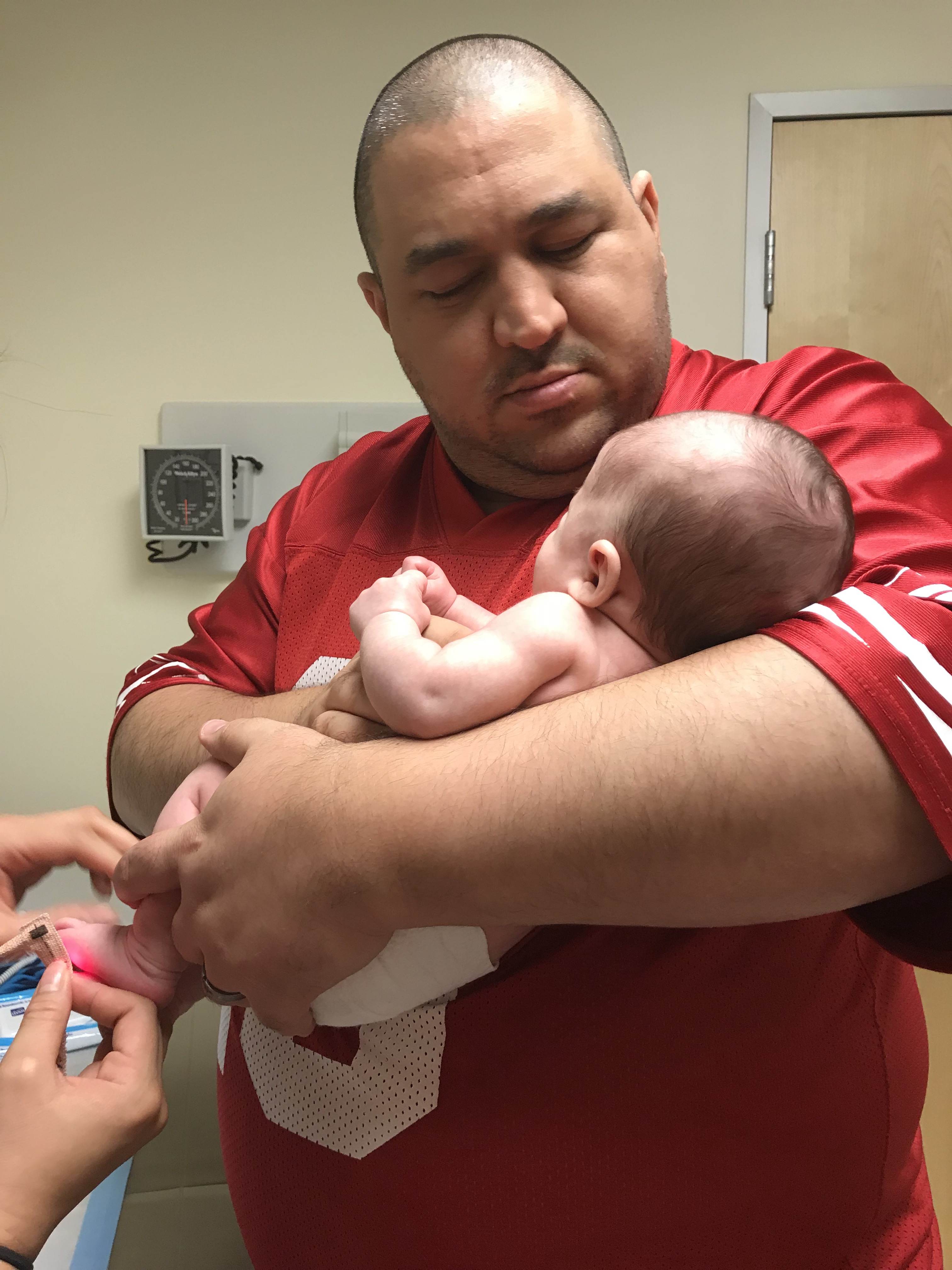 William’s toes are so small that she had to take it off and wrap it around more of his foot. He tends to squirm during tests so it was impossible to get an accurate reading with him lying on the table.