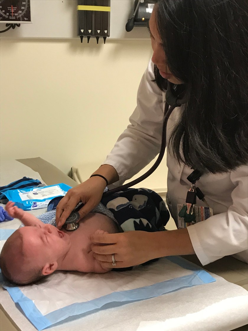 Luckily, Dr. V is great with fussy babies and was able to get him a bit calmer and complete the exam.